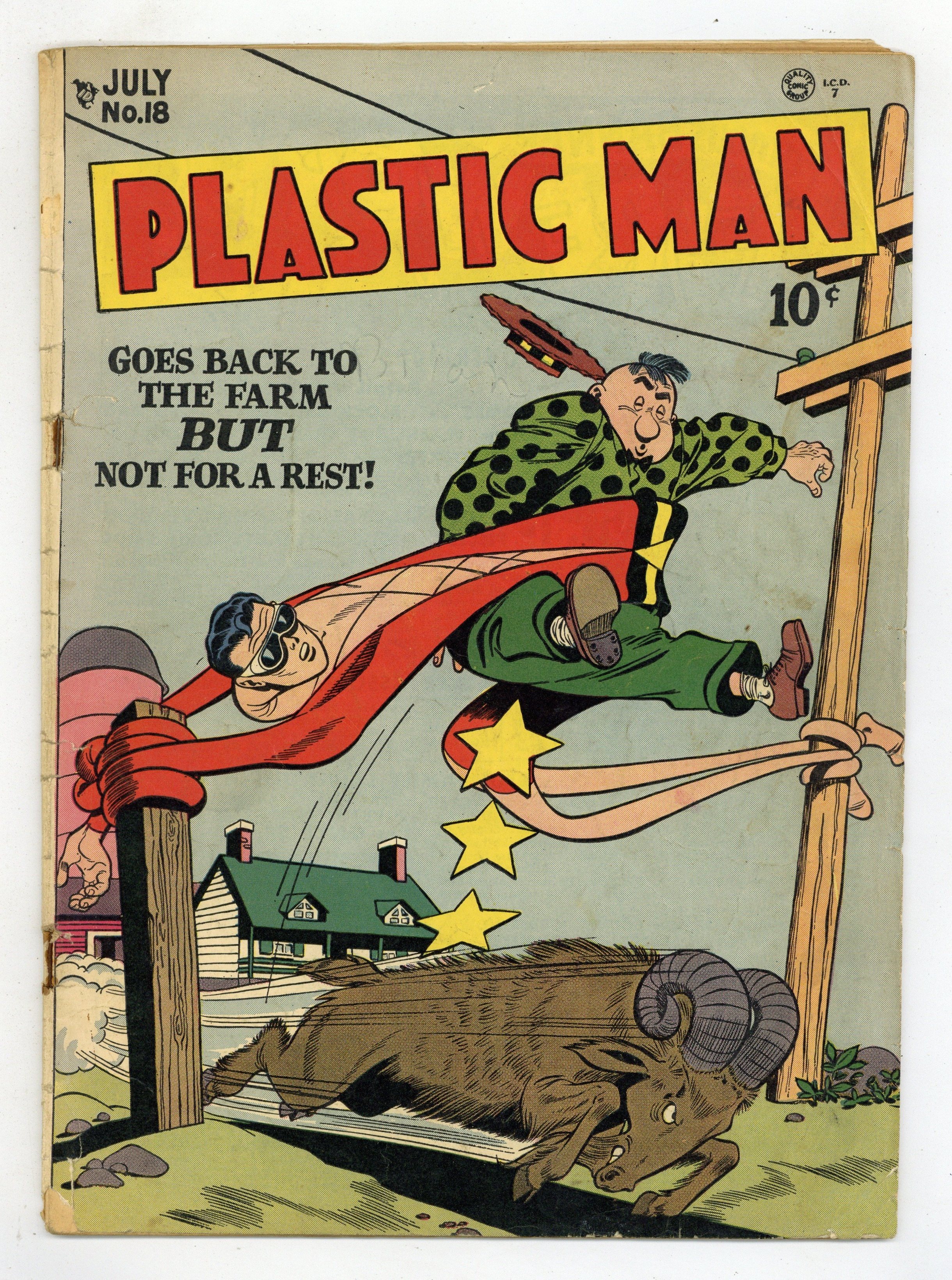 Untitled Plastic Man story. Dewey Drip story, script and art by Bernard Dibble. Woozy Winks story. Slap Happy Pappy humor page. Accept No Subtitute text story starring Plastic Man. Plastic Man story with Z. Newgate Popskull. Jack Cole cover/interior art. 36 pgs. $0.10. Cover price $0.10.