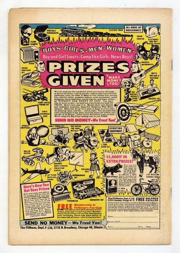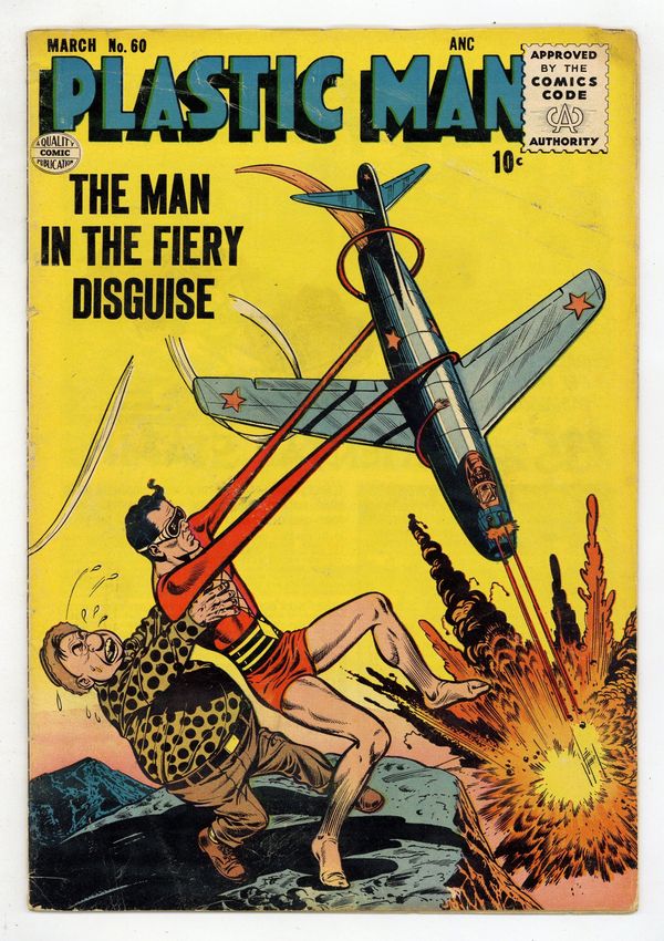 Cover art by Dick Dillin. The Man With the Fiery Disguise starring Plastic Man. Big Top starring Woozy Winks. The Bounding Bandit starring Plastic Man. Woozy Winks story, art by Gill Fox. A Trap For Rustlers text story. Hypno, Master of Mystery starring Plastic Man. 36 pgs. $0.10. Cover price $0.10.
