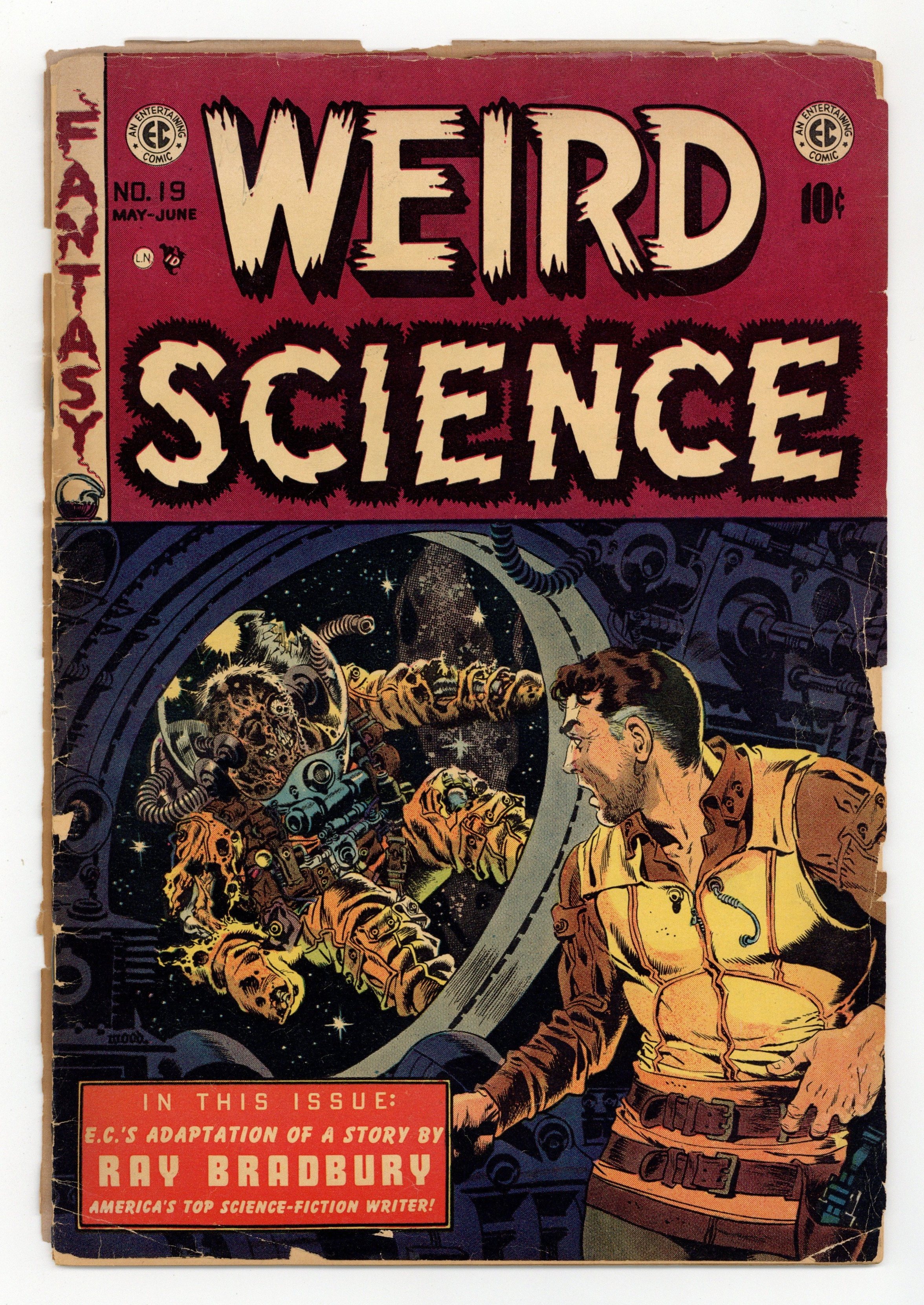 "The Precious Years" (art by Wally Wood); "The One Who Waits" (adapted from a Ray Bradbury story; art by Al Williamson with assistance from Frank Frazetta); "Right on the Button!" (art by Bill Elder); and "Keyed Up!" (art by Joe Orlando). One-page Bradbury biography. Classic horror in outer space cover by Wally Wood. 36 pages, full color. Cover price $0.10.