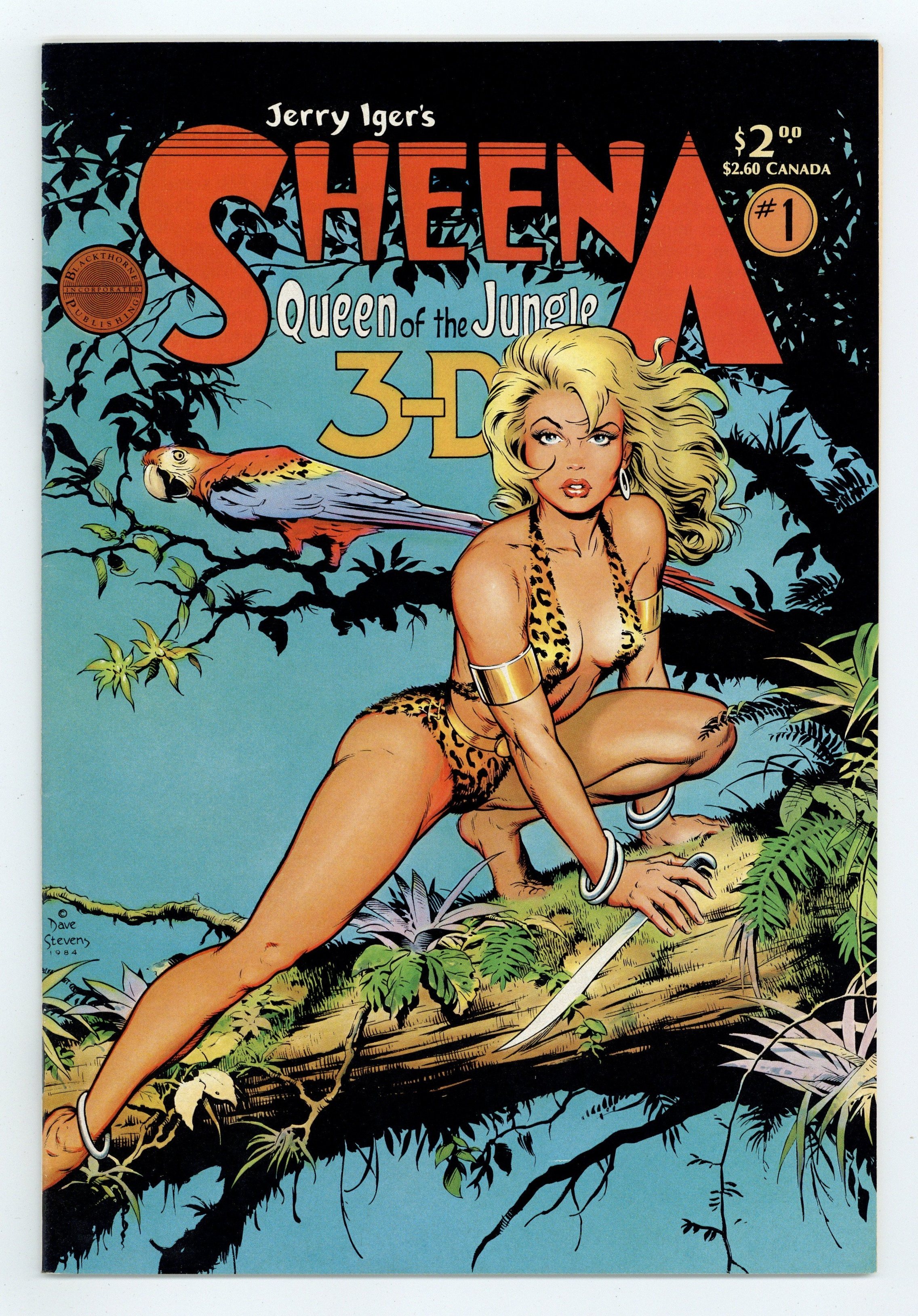 Stories by Morgan Thomas and S.M. 'Jerry' Iger. Art by Matt Baker, Llamuz, and Robert Hayward Webb, plus 3-D effects by Ray Zone and Tony Alderson. Cover by Dave Stevens. Sometimes listed as Blackthorne 3-D Series (1985) #1. The first issue of Blackthorne's long-running 3-D series, featuring Jerry Igers classic jungle princess, hero of pulps, comics, and the big and small screens. Absent from comics for almost three decades, this presents some of her 1950s adventures in 3-D format, including one by legendary good-girl artist Matt Baker. But the main draw for many fans will be the stunning cover by beloved artist (and Rocketeer creator) Dave Stevens. Also featuring an introduction by creator Jerry Iger, a Snarzan the Ape spoof from Great Comics (1941) #1, and a Congo King story with art by legendary good-girl artist Matt Baker. Heroine in the Jungle; Sargasso of Lost Safaris; Snarzan the Ape in Mein Kemp Von Der Chungle; Congo King; Spoor of the Dancing Skeletons. 32 pages, B&W with 3-D effects. NOTE: Copy may or may not include 3-D glasses. Cover price $2.00.