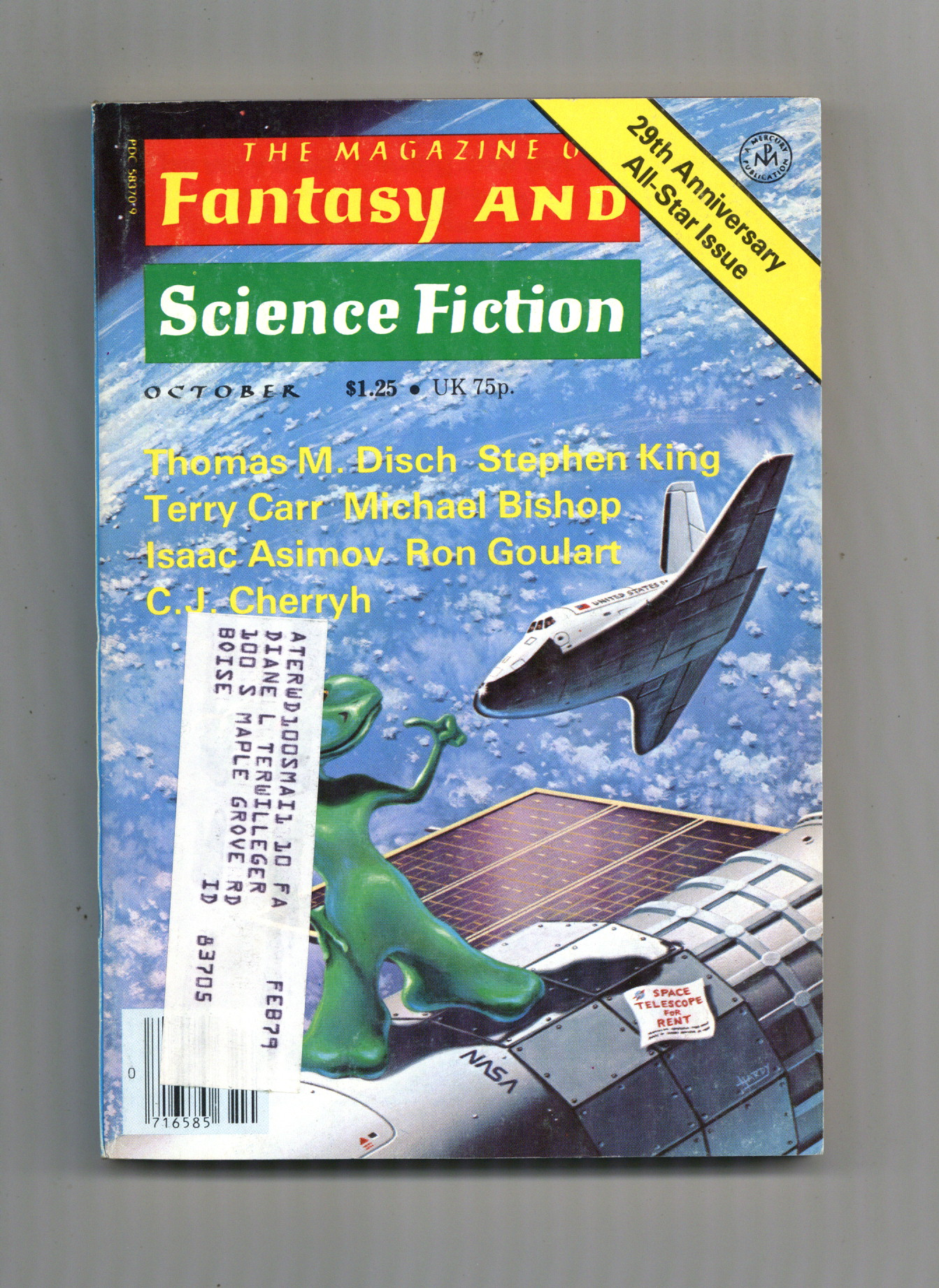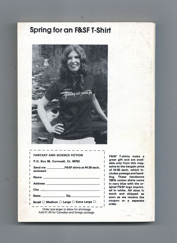Published Oct 1978 by Mercury Publications.$225.00Volume 55, Issue 4 - October 1978. Cover by David Hardy. Fantasy and science fiction stories by Stephen King - 1st app of The Gunslinger (Dark Tower), Thomas M. Disch, Michael Bishop, C.J. Cherryh, Bill Pronzini, Barry N. Malzberg, Ron Goulart, Terry Carr. Science article by Isaac Asimov. Softcover. 5-in. x 7-in., 162 pages, Text (with B&W illustrations). Cover price $1.25.