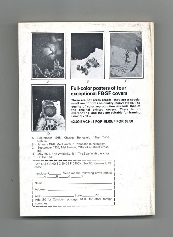 Published Jul 1978 by Mercury Publications.$8.00Volume 55, Issue 1 - July 1978. Cover by Ron Walotsky. Fantasy and science fiction stories by Sterling E. Lanier, Neal Barrett Jr., Paul Dellinger, David Redd, David S. Garnett, and James Patrick Kelly. 5 1/2-in. x 7 1/2-in., 162 pages, B&W Cover price $1.25.
