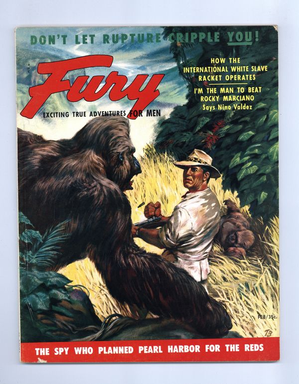 Published Feb 1955 by Weider Publications.$33.00Volume 20, Issue 11 - February 1955. Cover by Thomas Beecham. Men's adventure magazine featuring articles on true crime and politics. 8 1/2-in. x 11-in., 82 pages, B&W Cover price $0.35.
