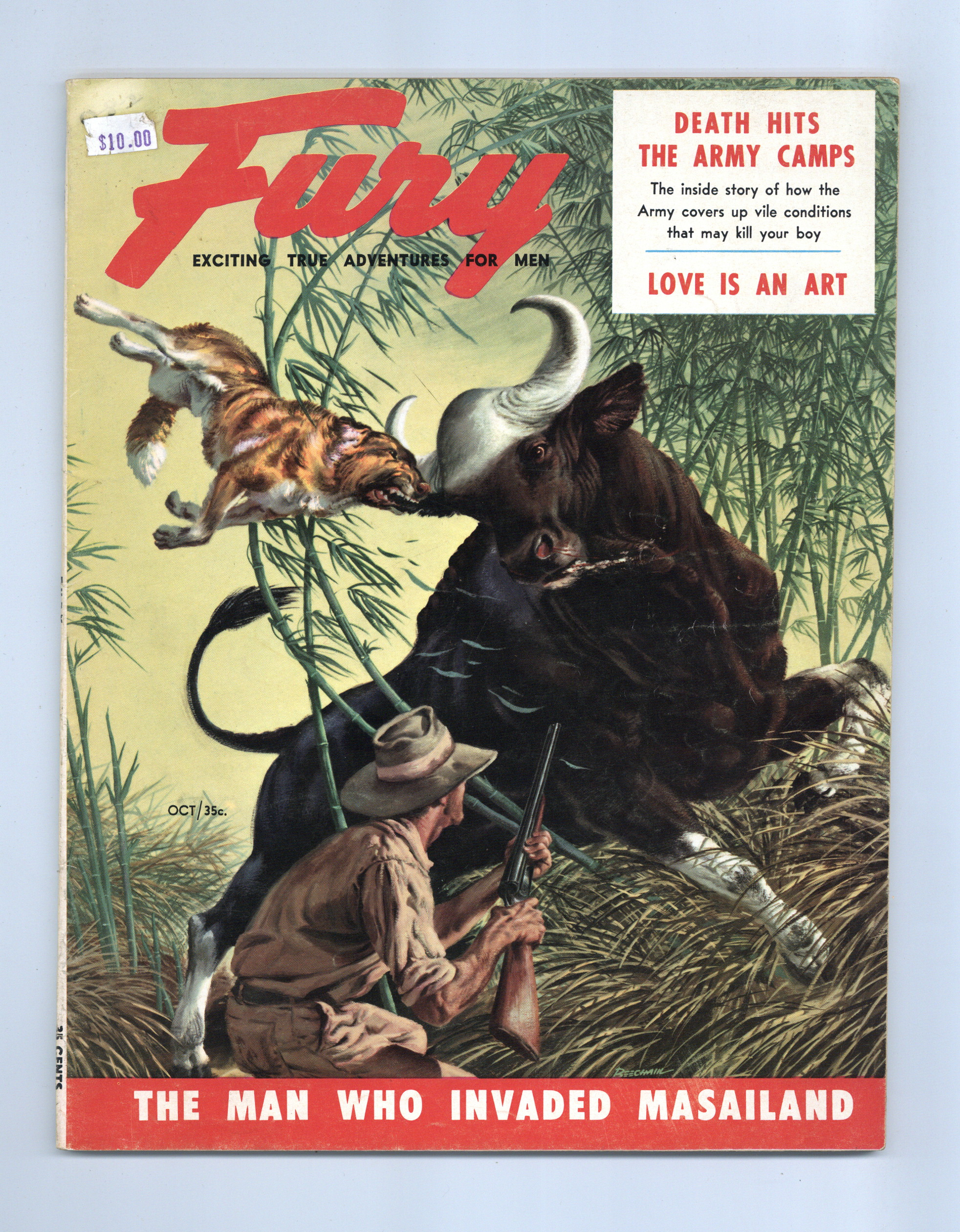 Volume 21, Issue 3 - October 1955. Cover by Thomas Beecham, back cover of Lili St. Cyr. Men's adventure magazine featuring articles, fiction, humor, and pin-up pictorials. WARNING: One article contains graphic descriptions of torture. 8 1/2-in. x 11-in., 82 pages, B&W. MATURE. Cover price $0.35.