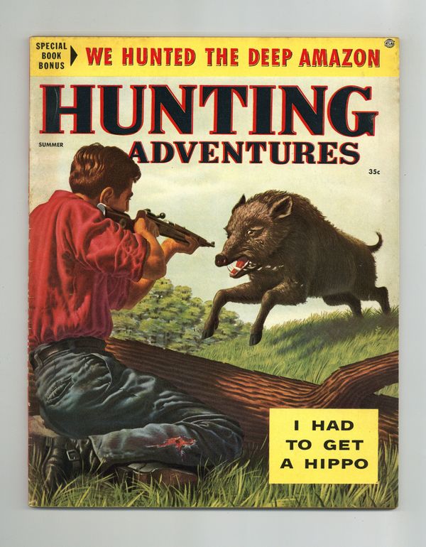 Published Jun 1955 by Newsstand Publications.$60.00Volume 1, Issue 4 - June 1955. Cover by Simon Greco. Men's magazine focusing on Hunting stories and articles. 8 1/2-in. x 11-in., 98 pages, B&W Cover price $0.35.