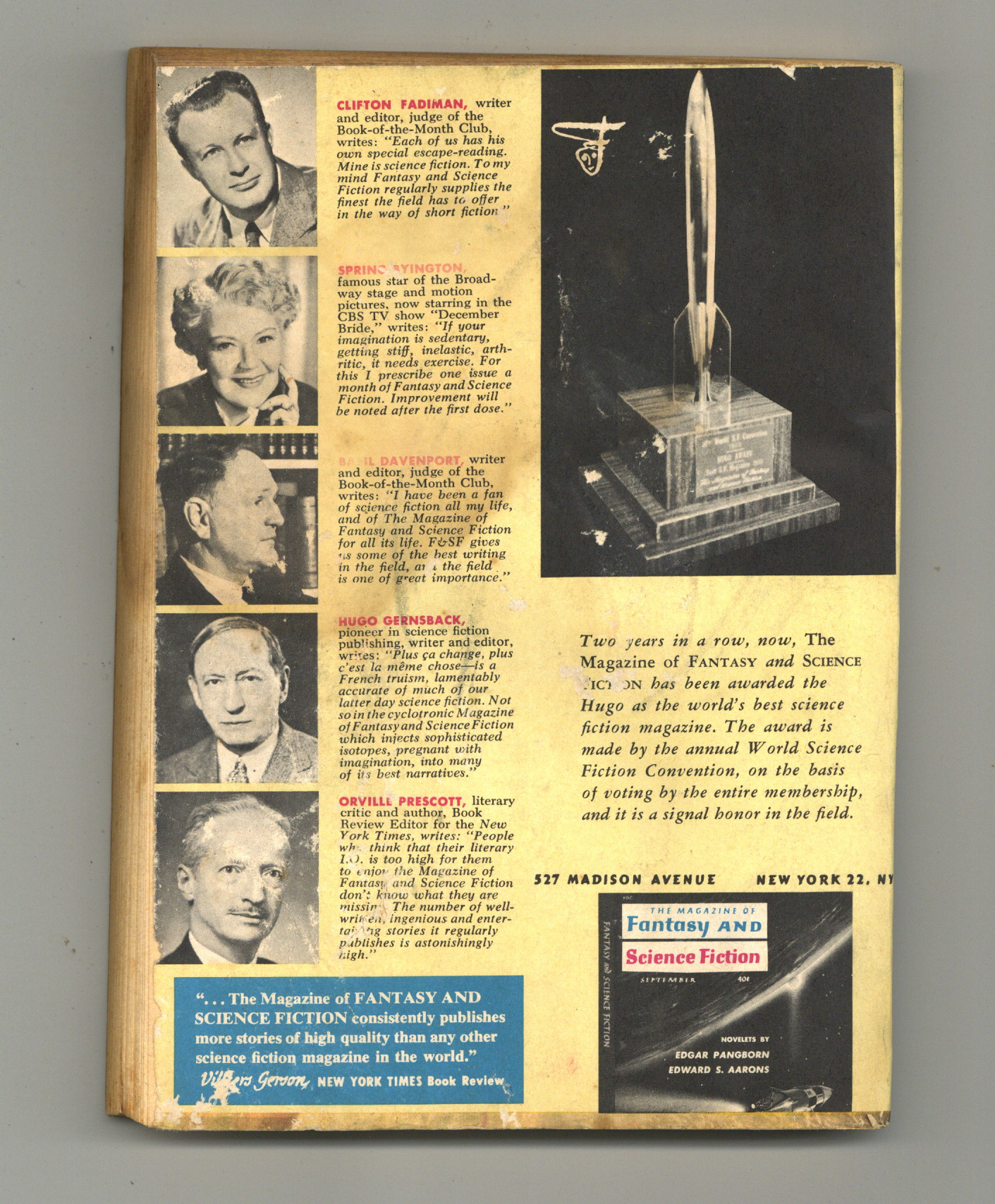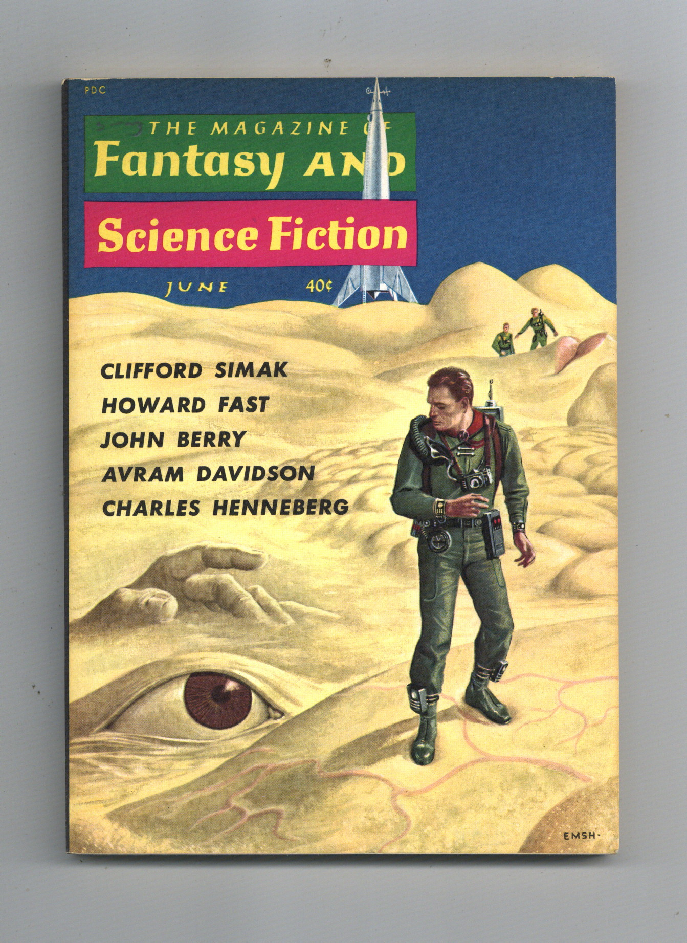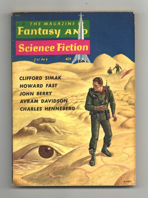 Volume 18, Issue 6 - June 1960. Cover by Emsh. Fantasy and science fiction stories by H.F. Ellis, Howard Fast, Hilbert Schenk Jr., Mrs. Agate, Avram Davidson, Isaac Asimov, and Damon Knight. Softcover, 5 1/2-in. x 7 1/2-in., 128 pages, B&W. Cover price $0.40.