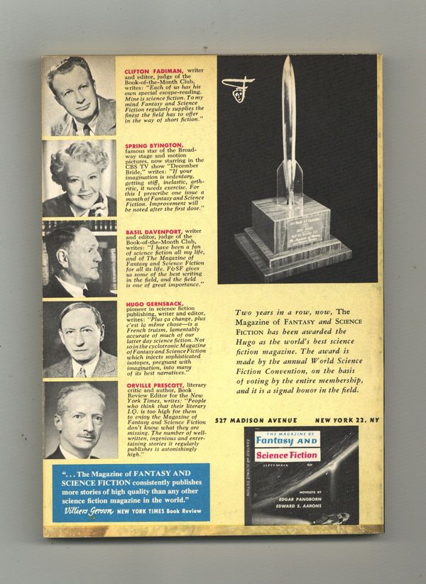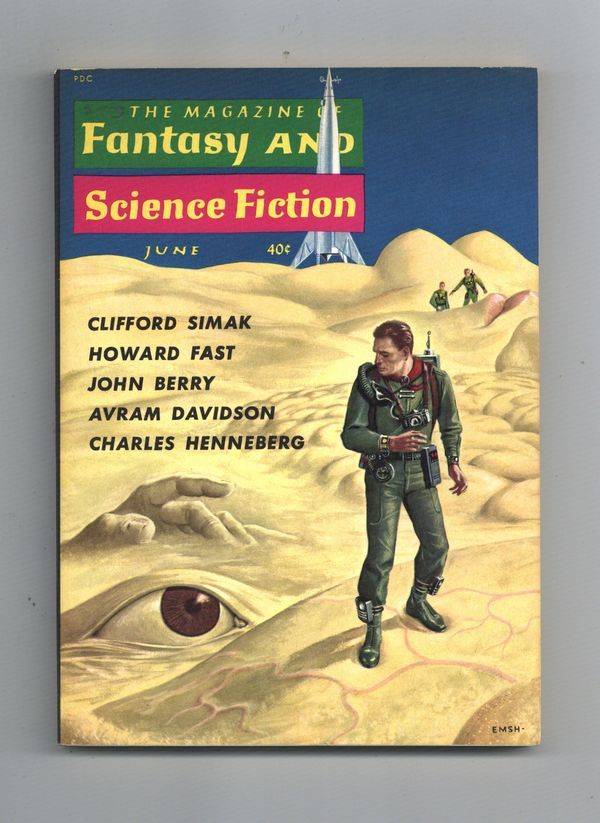 Published Jun 1960 by Mercury Publications.$32.00Volume 18, Issue 6 - June 1960. Cover by Emsh. Fantasy and science fiction stories by H.F. Ellis, Howard Fast, Hilbert Schenk Jr., Mrs. Agate, Avram Davidson, Isaac Asimov, and Damon Knight. Softcover, 5 1/2-in. x 7 1/2-in., 128 pages, B&W. Cover price $0.40.