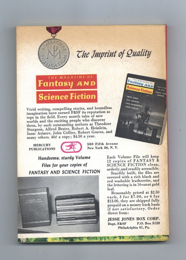 Published Nov 1960 by Mercury Publications.$15.00Volume 19 Issue 5 - November 1960. Cover by Emsh. Fantasy and science fiction stories by Vance Aandahl, Robert F. Young, Will Worthington, John W. Vandercook, Robert Choly, Keith Laumer, Bruce J Friedman, Grendel Briarton, and Isaac Asmiov. Softcover, 5 1/2-in. x 7 1/2-in., 128 pages, B&W. Cover price $0.40.