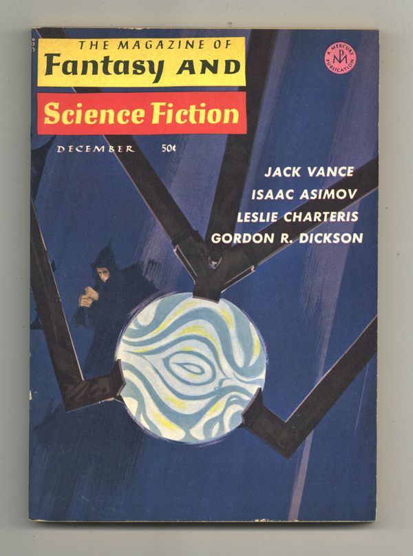 Published Dec 1965 by Mercury Publications.$15.00Volume 29, Issue 6 - December 1965. Cover by Bert Tanner. Fantasy and science fiction stories by Gordon R. Dickson, Gahan Wilson, Leo P. Kelley, Rick Raphael, Fritz Lieber, Leslie Charteris, Richard H. Blum and Isaac Asimov. Softcover, 5 1/2-in. x 7 1/2-in., 128 pages, B&W. Cover price $0.50.