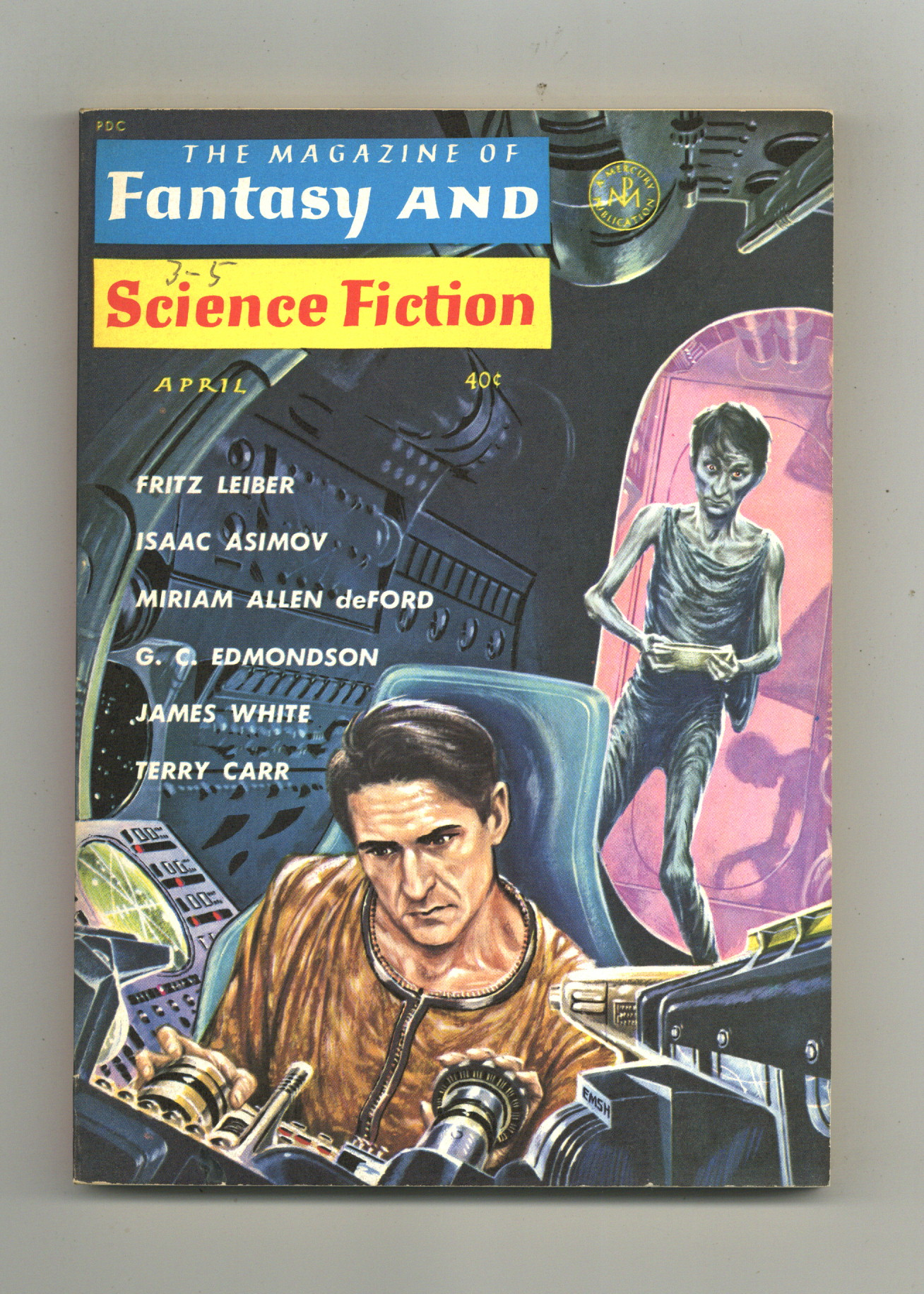 Published Apr 1963 by Mercury Publications.$34.00Volume 24, Issue 4 - April 1963. Cover by Ed Emshwhiller. Fantasy and Science Fiction stories by James White, Doris Pitkin Buck, Robert J. Tilley, Gertrude Friedberg, Isaac Asimov, Grendel Briarton, Kit Reed, Fritz Lieber Miriam Allen Deford, Avram Davidson and Terry Carr. Softcover, 5 1/2-in. x 7 1/2-in., 130 pages, Text (with B&W illustrations) Cover price $0.40.
