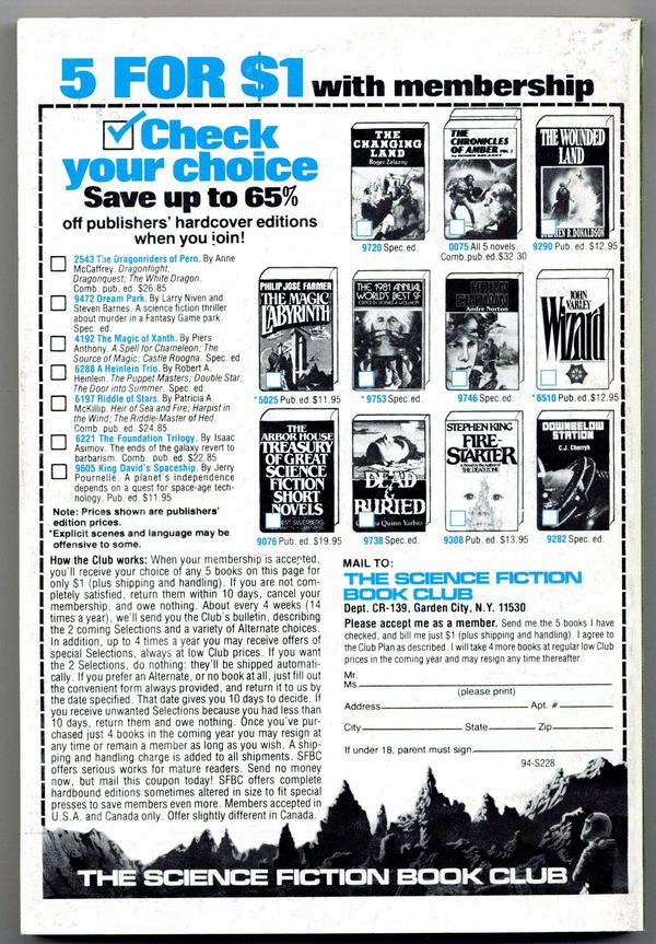 Published Sep 1981 by Mercury Publications.$2.65Volume 61, Issue 3 - September 1981. Cover by Barbara Berger. Fantasy and Science Fiction stories by Robert Holdstock, Michael Ward, John Morressy, John Kessel, Barry N. Malzberg, Thomas Wylde, Tony Sarowitz and Jane Yolen. Science article by Isaac Asimov. Softcover. 5-in. x 7-in., 162 pages, text (with B&W illustrations). Cover price $1.50.