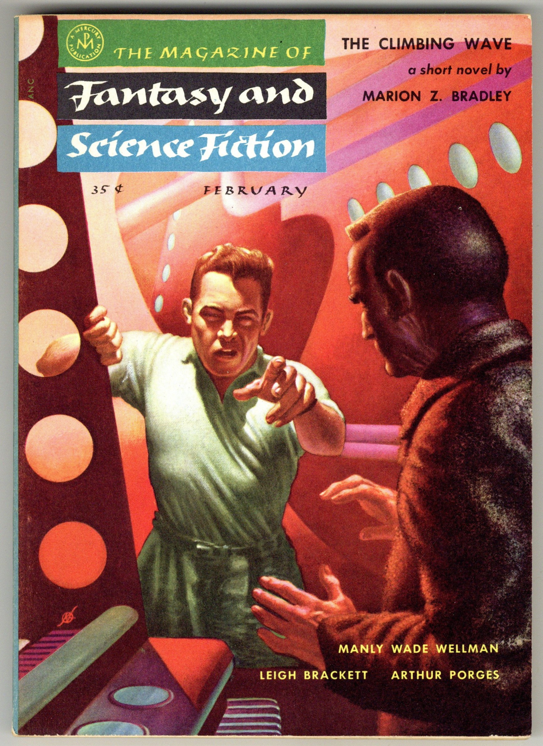 Published Feb 1955 by Mercury Publications.$32.00Volume 8, Issue 2 - February 1955. Cover by Kelly Freas. Fantasy and Science fiction stories by Marion Zimmer Bradley, Frederic Brown, Mildred Clingerman, Leigh Brackett, Arthur Porges, Manly Wade Wellman, P.M. Hubbard and Bryce Walton. Softcover, 5.5-in. x 7.5-in. 128 pages, text only. Cover price $0.35.