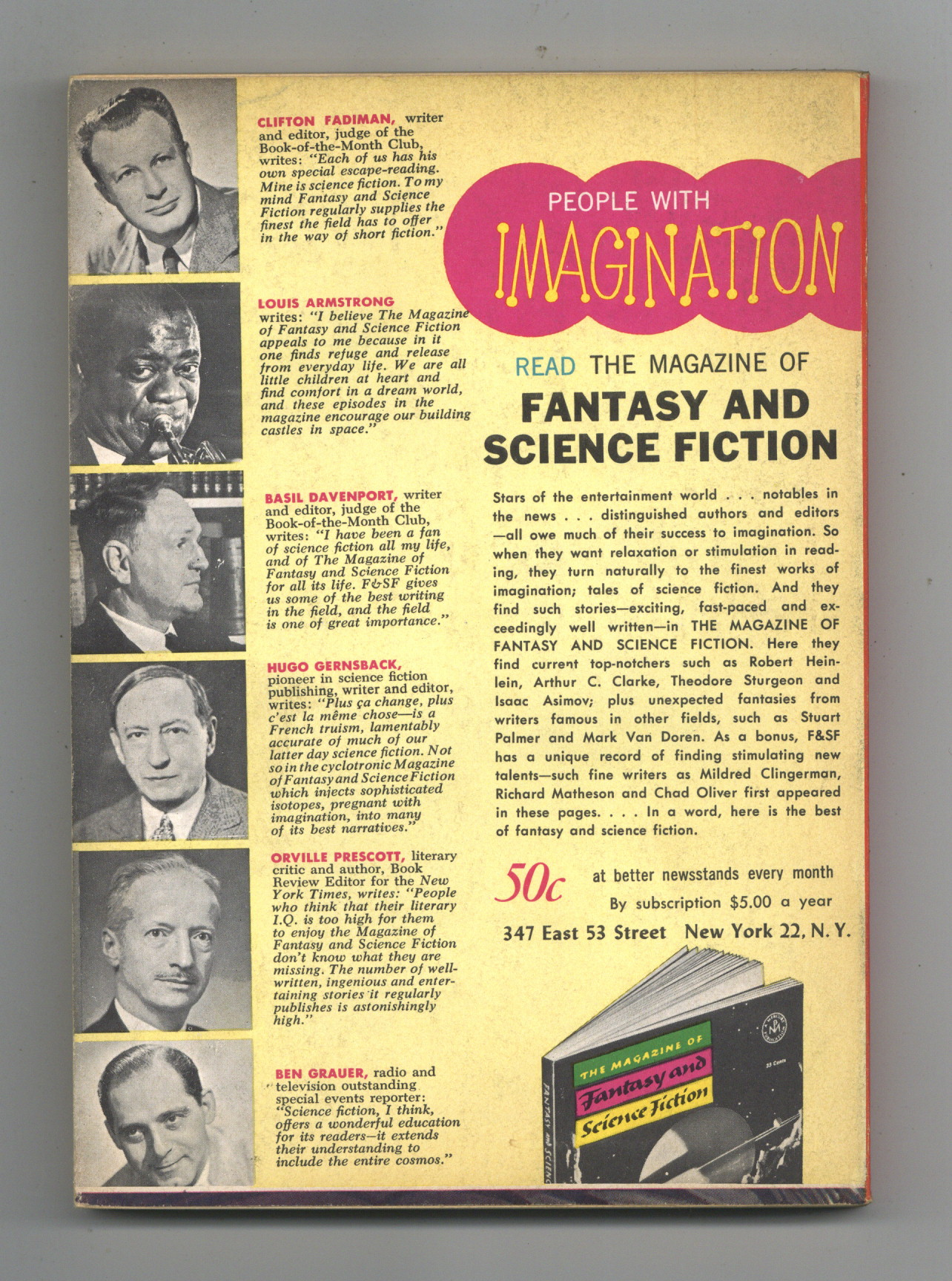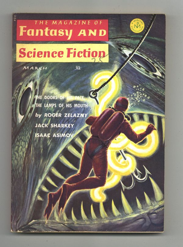 Published Mar 1965 by Mercury Publications.$3.00Volume 28, Issue 3 - March 1965. Cover by Emsh. Fantasy and Science Fiction stories by Roger Zelazny, J.H. Brennan, Theodore L. Thomas, Jack Sharkey, Judith Merril, Ernesto Gastaldi, Ron Smith, Walter H. Kerr, Alex Kirs, Isaac Asimov, Lin Carter, J.W. Schultz and Bob Ottum Jr. Softcover. 5-in. x 7-in., 130 pages, Text (with B&W illustrations). Cover price $0.50.