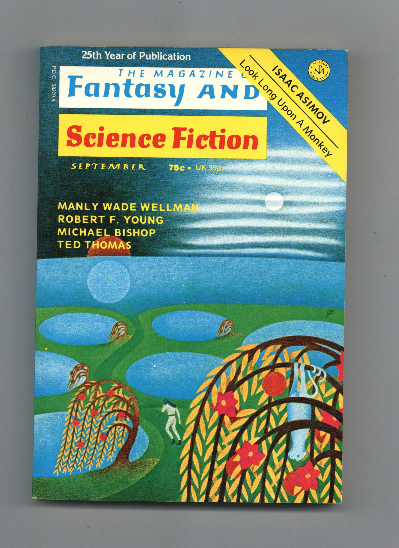 Published Sep 1974 by Mercury Publications.$2.65Volume 47, Issue 3 - September 1974. Cover by Jeannine Guertin. Fantasy and Science Fiction stories by Ted Thomas, Tom Reamy, Manly Wade Wellman, Larry Eisenberg, Michael Bishop, C.L. Grant and Robert F. Young. Science article by Isaac Asimov. 5-in. x 7-in., 160 pages, Text. Cover price $0.75.