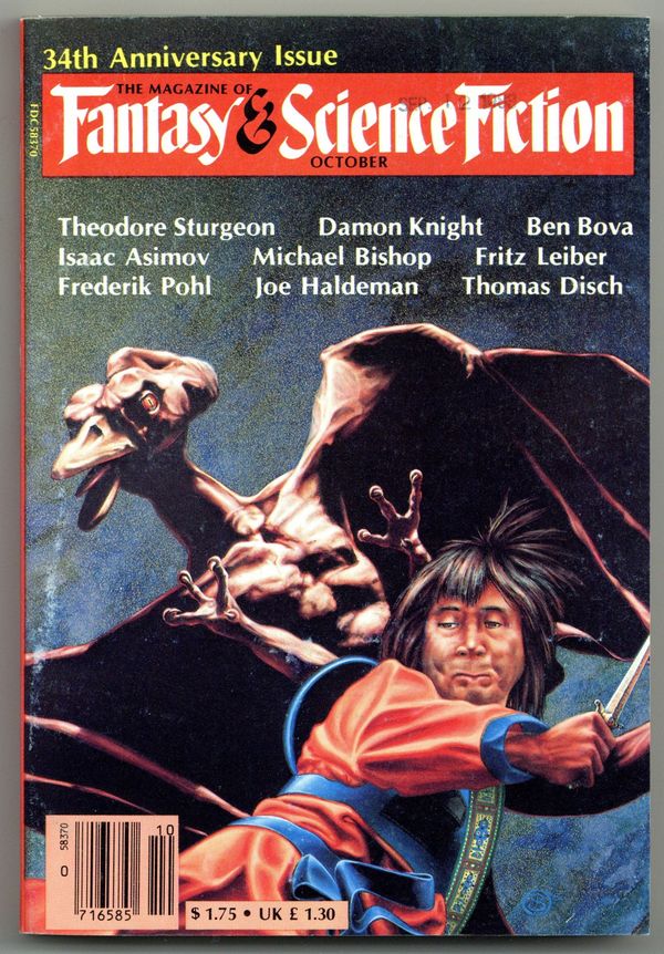 Published Oct 1983 by Mercury Publications.$2.65Volume 65, Issue 4 - October 1983. Cover by Barclay Shaw. Fantasy and Science Fiction stories by P.E. Cunningham, Michael Bishop, Fritz Leiber, Damon Knight, Frederik Pohl, Joe Haldeman, Theodore Sturgeon, Thomas M. Disch and Ben Bova. Science article by Isaac Asimov. Softcover. 5-in. x 7-in., 162 pages, text (with B&W illustrations). Cover price $1.75.