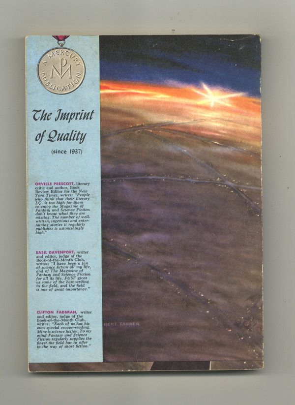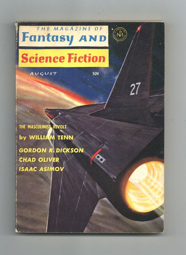 Published Aug 1965 by Mercury Publications.$2.65Volume 29, Issue 2 - August 1965. Cover by Bert Tanner. Fantasy and science fiction stories by William Tenn, Robert Rohrer, Theodore L. Thomas, Willard Marsh, Jody Scott, Laurence M. Janifer and S.J. Treibich. Science article by Isaac Asimov. Softcover. 5-in. x 7-in., 128 pages, Text (with B&W illustrations). Cover price $0.50.