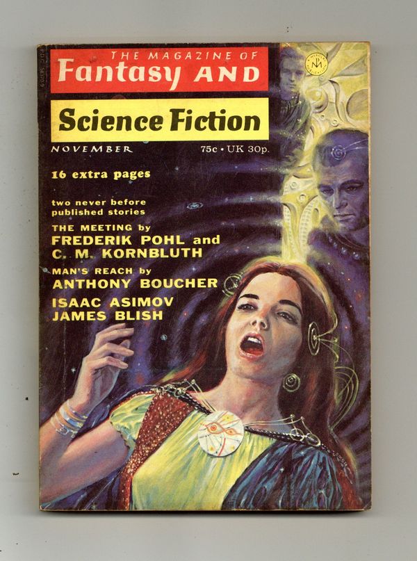 Volume 43, Issue 5 - November, 1972. Cover by Ed Emshwiller. Fantasy and science fiction stories by Phyllis Eisenstein, Anthony Boucher, Jesse Bier, Frederik Pohl, C.M. Kornbluth, John Sladek, G.M. Glaskin and Michael G. Coney. Science article by Isaac Asimov. 5-in. x 7-in., 162 pages, Text (with B&W illustrations). Cover price $0.75.
