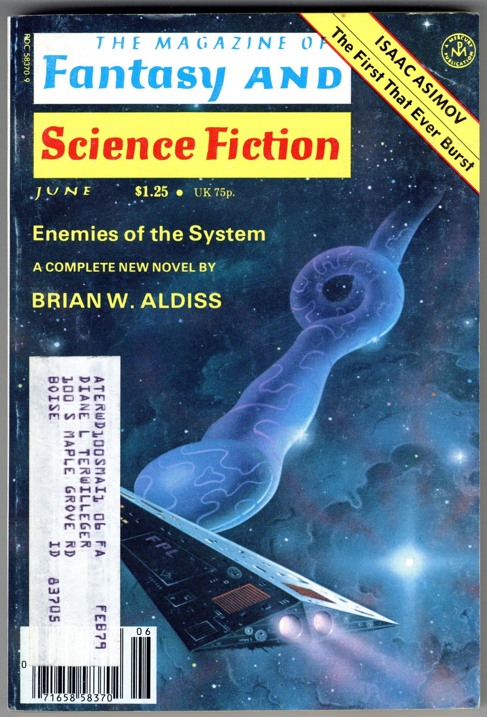 Volume 54, Issue 6 - June 1978. Cover by David Hardy. Fantasy and science fiction stories by Brian W. Aldiss, Jane Yolen, Lee Killough, Gordon Eklund, Frank Sisk, Jack C. Haldeman and Gary Jennings. 5-in. x 7-in., 162 pages, Text (with B&W illustrations). Cover price $1.25.