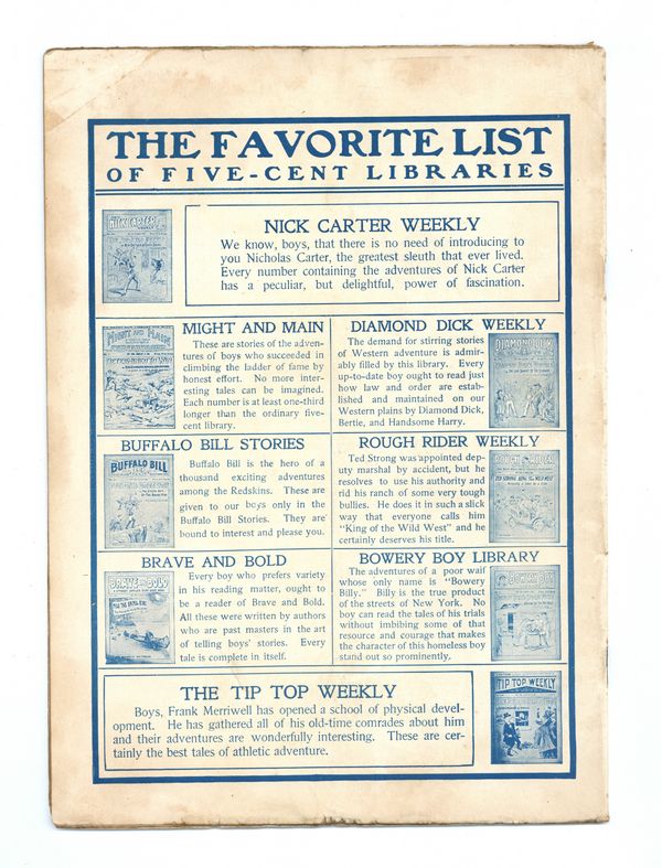 Published Aug 1906 by Street & Smith.$18.00- Staple rust: Moderate.