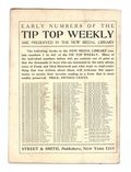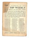 February 12, 1910. Written by Burt L. Standish (Gilbert Patten). Tip Top Weekly was promoted as "An Ideal Publication for American Youth," and was primarily devoted to the continuing adventures of student Frank Merriwell, who started at a fictional New England academy and then went to Yale, eventually becoming an international adventurer. Newsprint. 8.25-in. x 10.5-in. 34 pages, Text. Cover price $0.05.