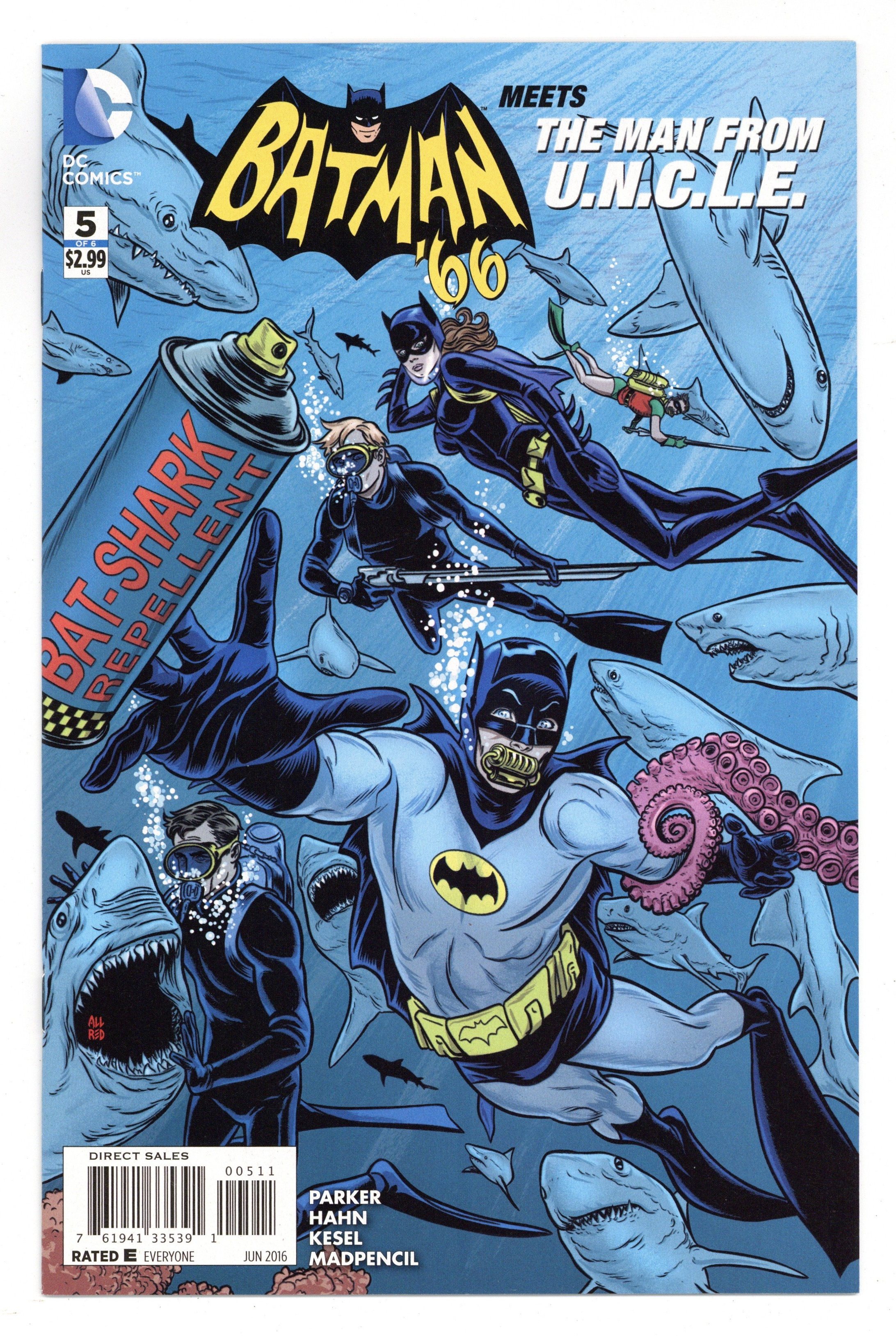 Written by Jeff Parker. Art by David Hahn and Karl Kesel. Cover by Michael Allred. Batman and the agents of U.N.C.L.E. have pulled out every trick and invention at their disposal to combat the Magpie's plans for world domination. But are they prepared for the grandest scheme yet-an open invitation for them to join and take control of T.H.R.U.S.H.?! 28 pages, full color. Rated E Cover price $2.99.