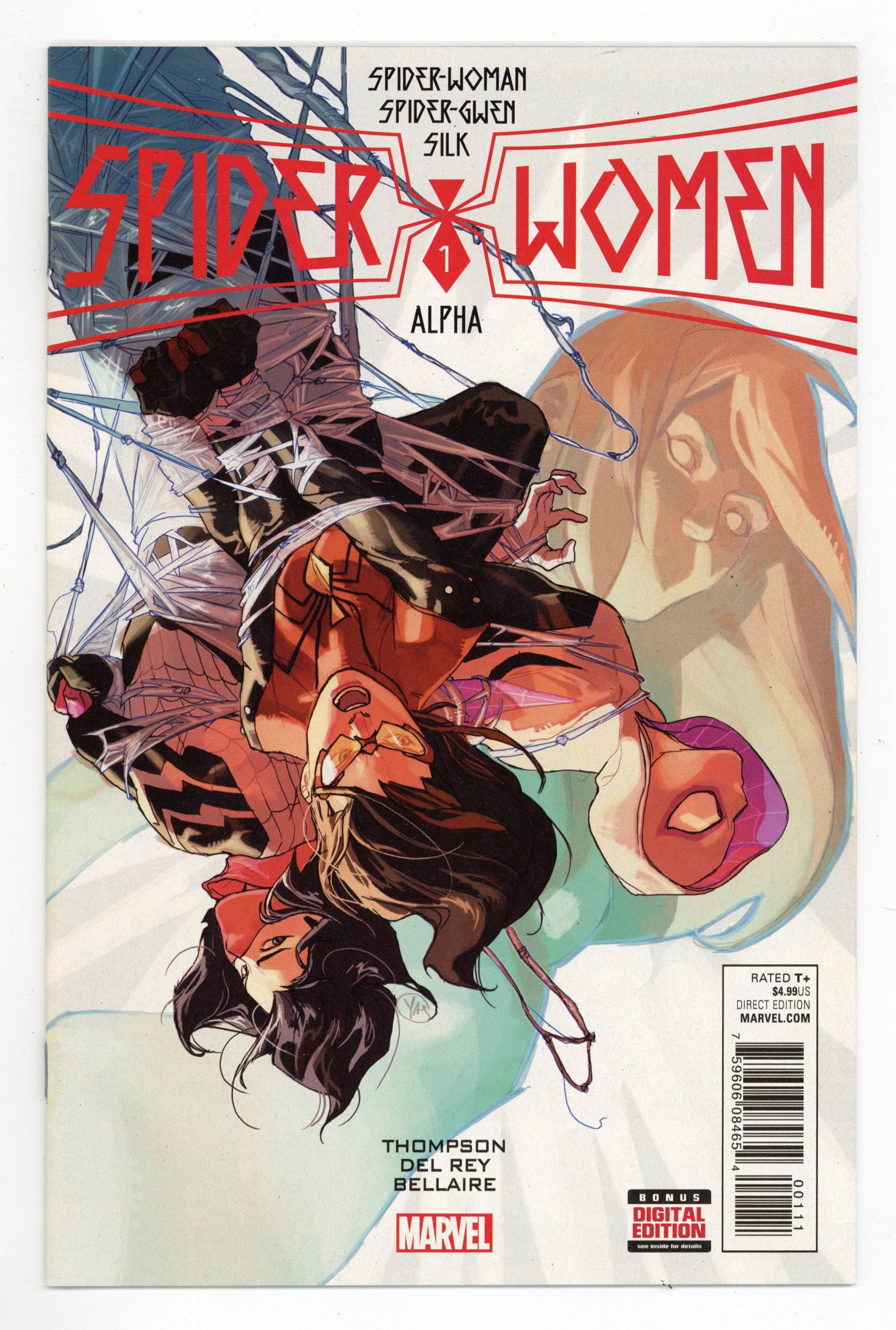 Tags: Spider-Women (Marvel) (part 1), Spider-Man$9.00Spider-Women: Part 1 of 8 - Written by Robbie Thompson. Art by Vanessa R. Del Rey. Cover by Yasmine Putri. SPIDER-WOMEN PART 1! The Spider-Event of 2016 is here, bringing SPIDER-GWEN, SILK and SPIDER-WOMAN together for a story too big for any one of their books! Spider-Woman is taking a mentor-role with Silk and Spider-Gwen, and the three spider-heroes take a brunch break on Gwen's Earth-65. But when the nefarious spy organization S.I.L.K. and their leader (Earth-65's Cindy Moon) notice the interdimensional interlopers, all of Jessica Drew's plans go wrong. Story continues in Spider-Gwen #7. 36 pages, full color. Rated T+ Cover price $4.99.