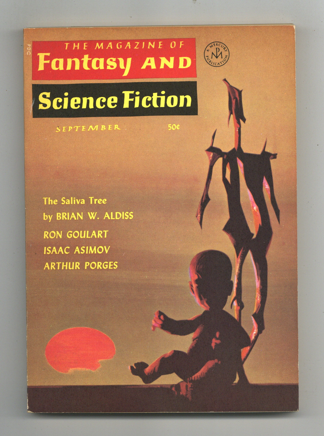 Published Sep 1965 by Mercury Publications.$15.00Volume 29, Issue 3 - September 1965. Cover by Bert Tanner. Fantasy and science fiction stories by Brian W. Aldiss, Ron Goulart, Isaac Asimov, and Arthur Porges. Softcover. 5-in. x 7-in., 128 pages, Text (with B&W illustrations). Cover price $0.50.