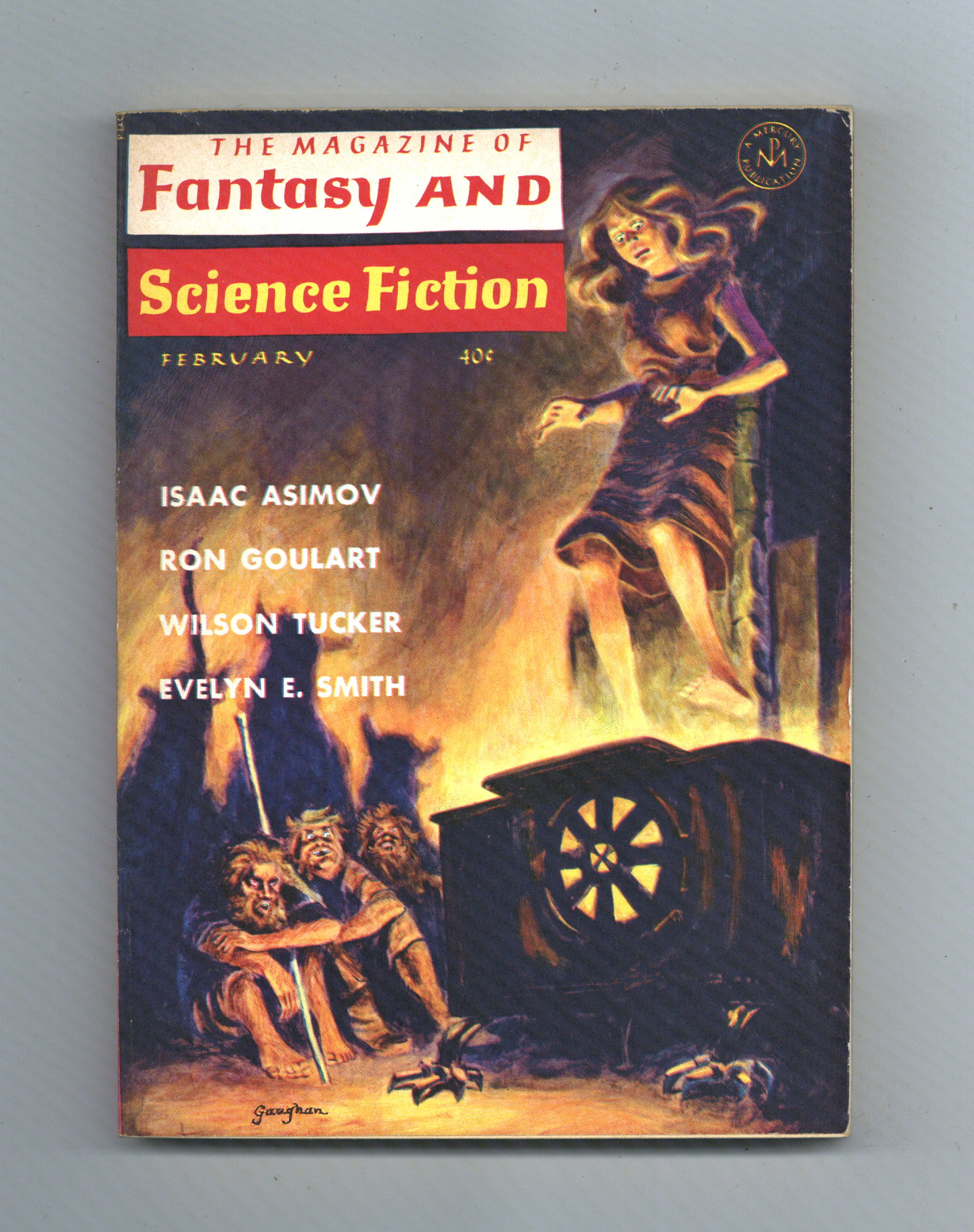 Volume 26, Issue 2 - February 1964. Cover by Jack Gaughn. Fantasy and Science fiction stories by Isaac Asimov, Ron Goulart, Wilson Tucker, and Evelyn E. Smith. Softcover, 5 1/2-in. x 7 1/2-in., 128 pages, B&W Cover price $0.40.
