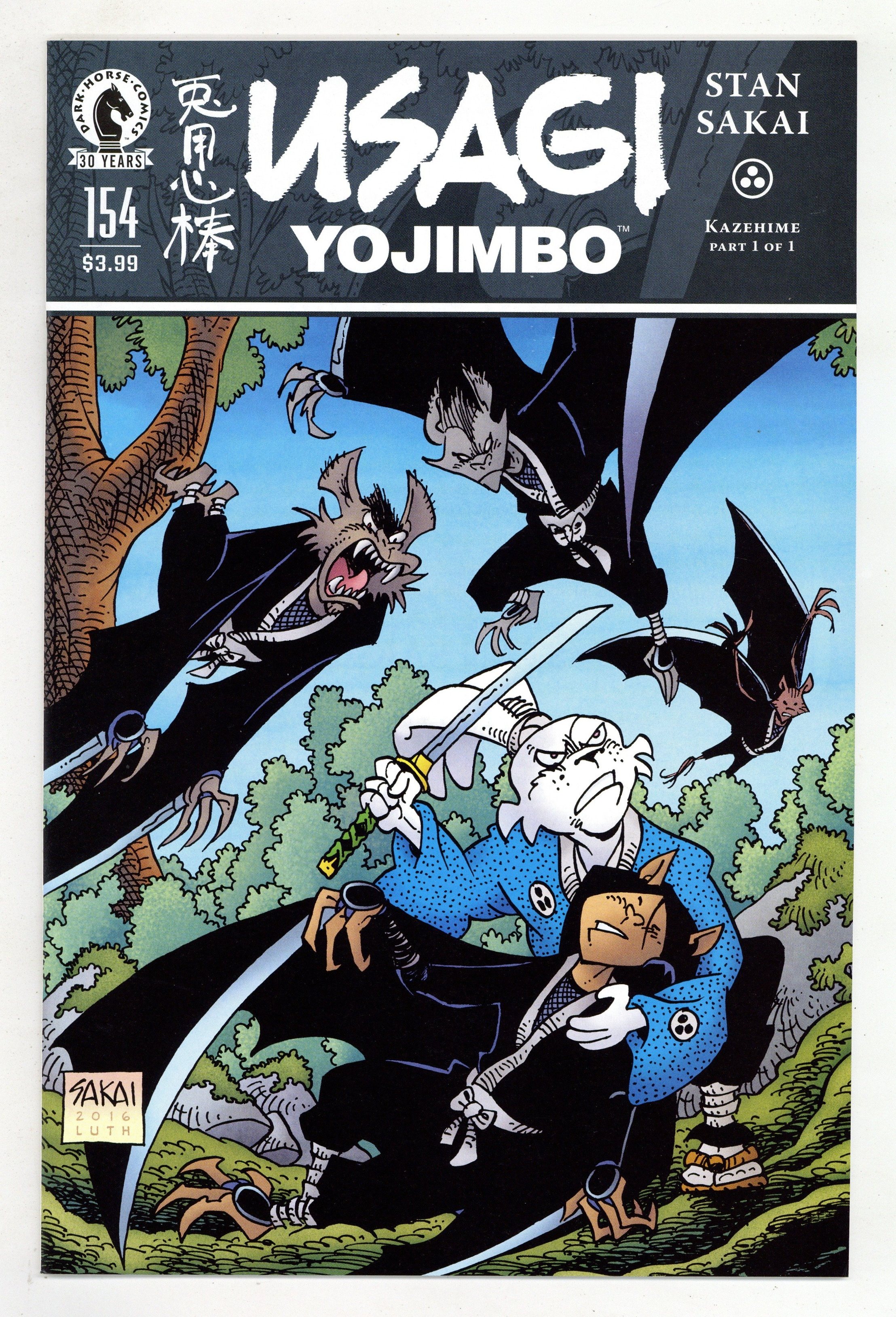 Published May 2016 by Dark Horse.$13.50Story, Art and Cover by Stan Sakai. When Usagi protects a Komori ninja during a raging storm, he never guesses that he will cross paths with her again . . . but many months later, fate places them on opposite sides of a trade agreement gone wrong. Usagi must protect the merchant, while the ninja has been hired to stop him. With the negotiation on the line, which side will emerge victorious? 24 pages, B&W. Cover price $3.99.