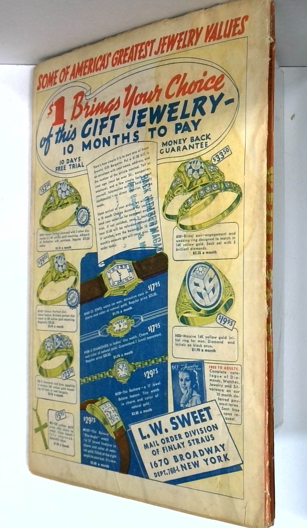 - Back cover detached 20%. Water damage: Slight. Staple rust: Moderate.