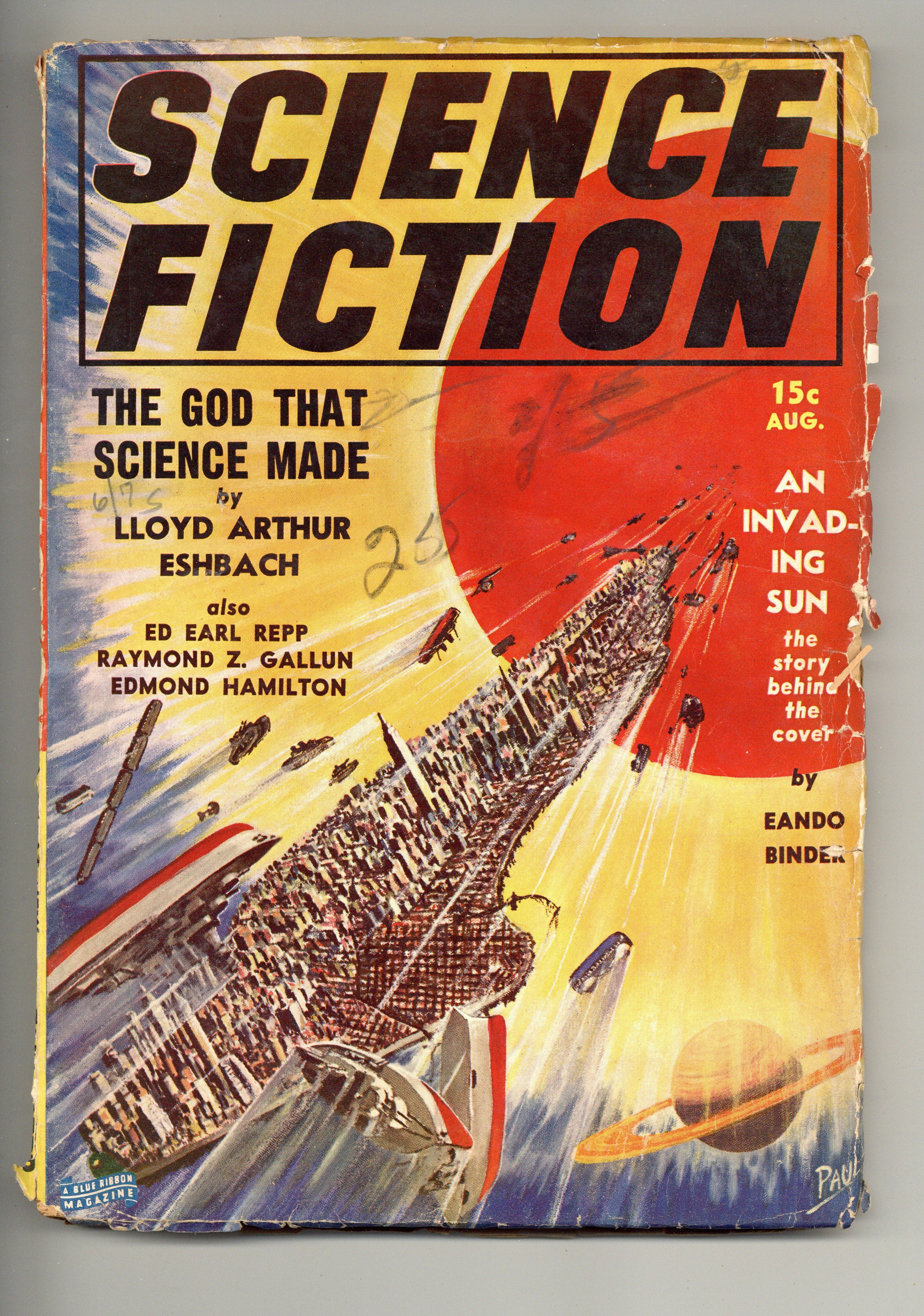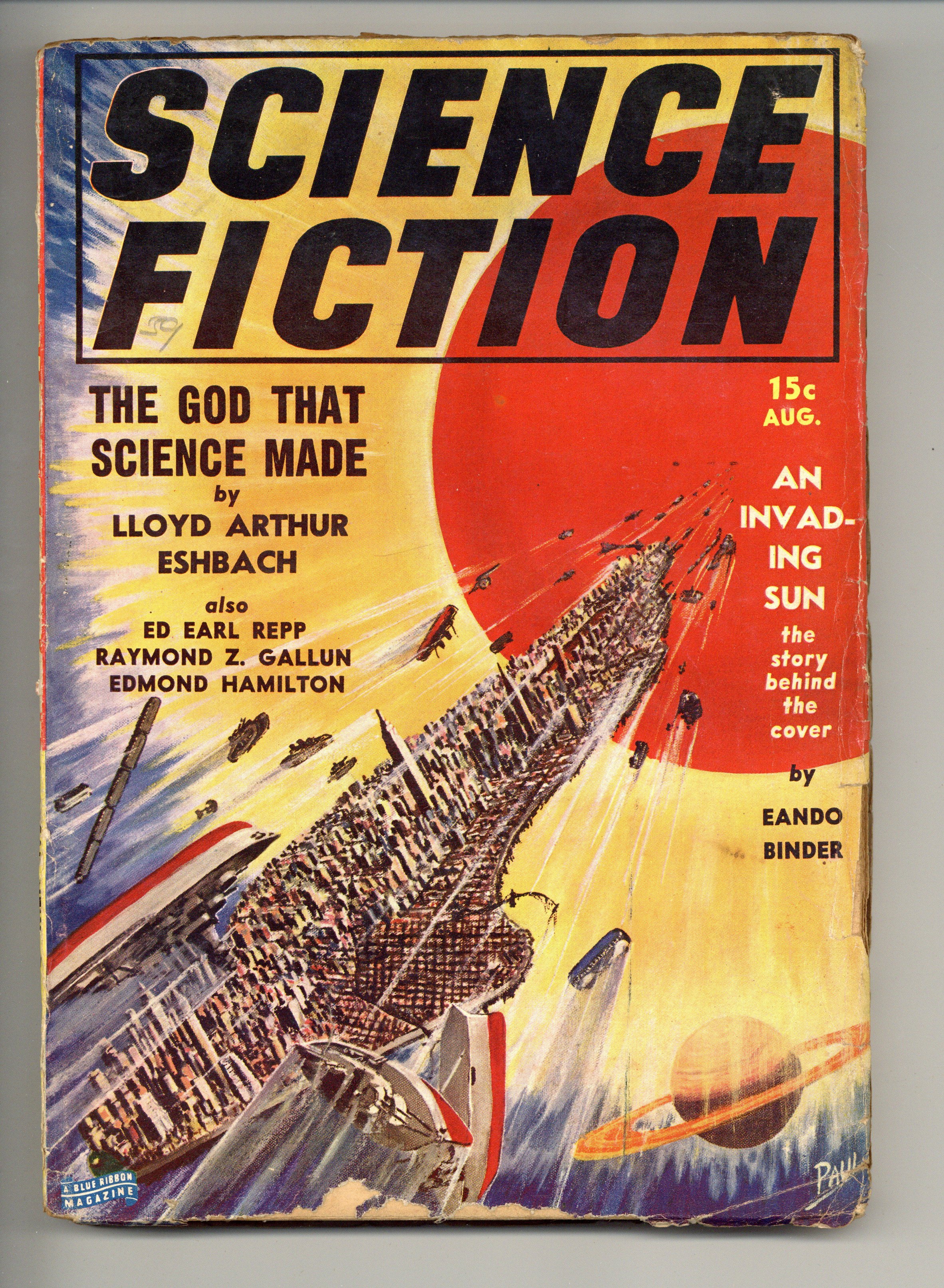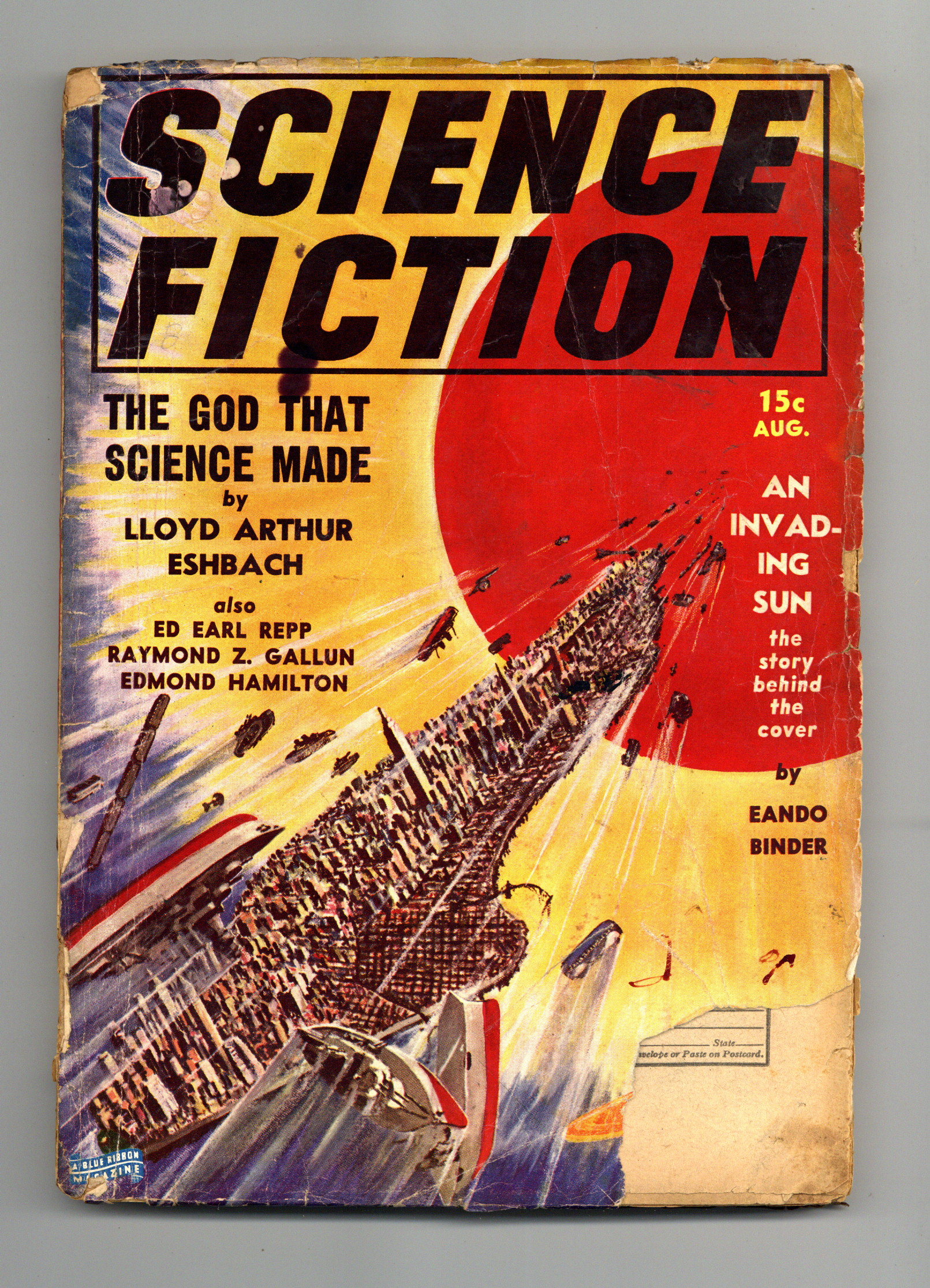 Volume 1, Issue 3 - August 1939. Science Fiction and adventure stories pulp magazine. This issue features "The God that Made Science" by Lloyd Arthur Eshbach, "An Invading Sun" by Eando Binder, and stories by Ed Earl Repp, Raymond Z Gallun, and Edmond Hamilton. 7-in. x 10-in., 130 pages, Text) Cover price $0.15.