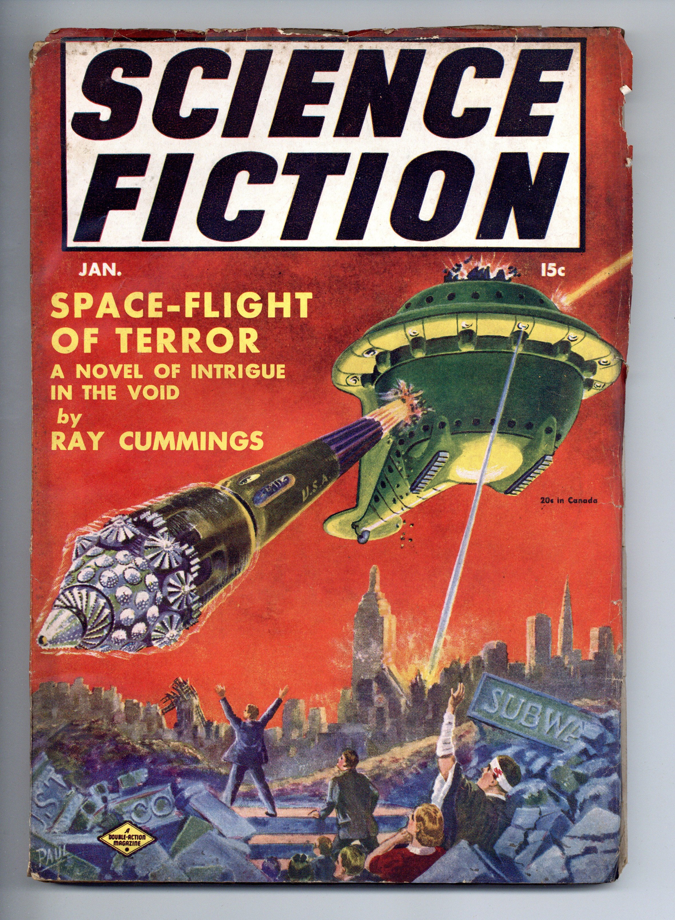Volume 2, Issue 3 - January, 1941. Science Fiction and adventure stories pulp magazine. Cover by Frank R. Paul. "Space-Flight of Terror" by Ray Cummings. 7-in. x 10-in., 114 pages, Text Cover price $0.15.