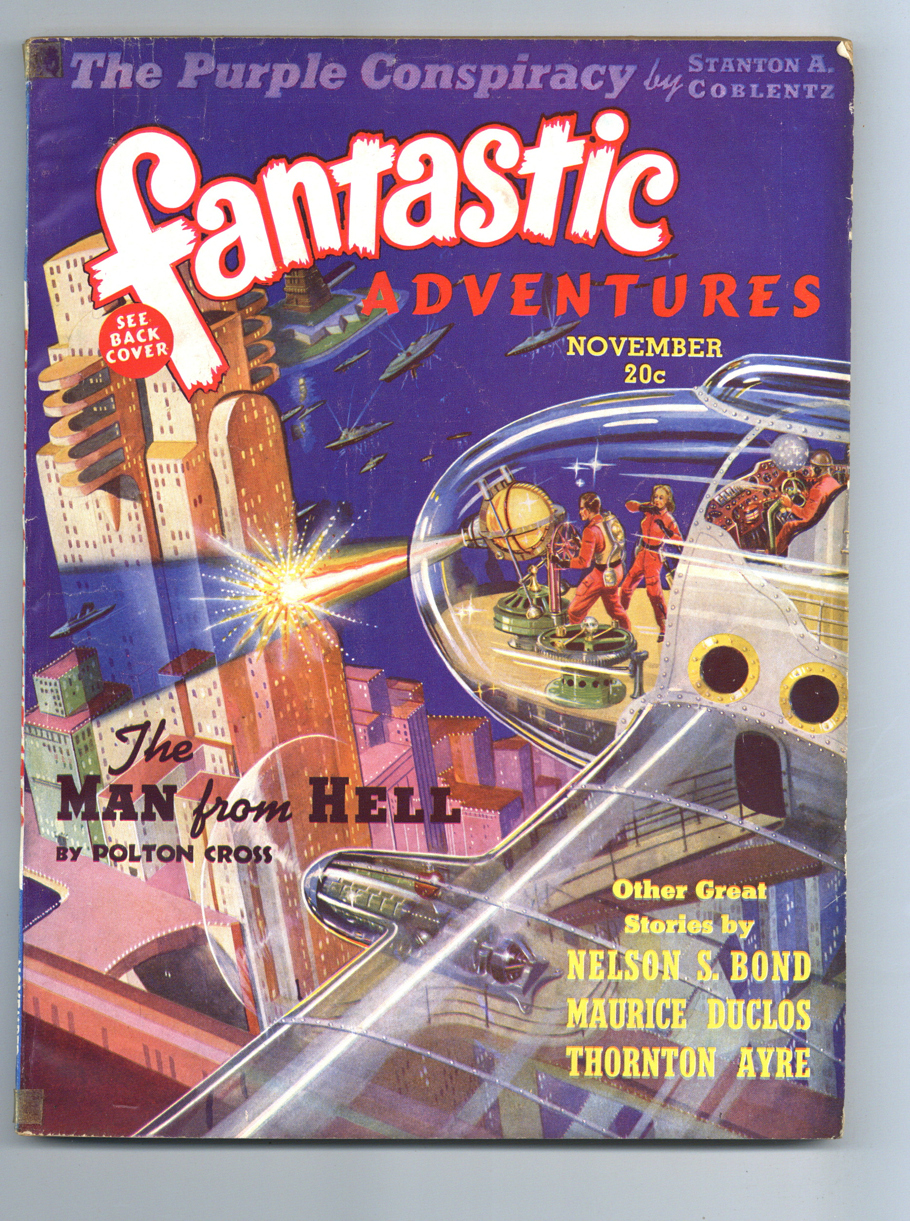 Volume 1, Issue 4 - November 1939. Cover by Robert Fuqua. Science Fiction and Fantasy adventure stories. This issue features "The Man From Hell" by Polton Cross, "The Purple Conspiracy" by Stanton A. Coblentz, and stories by Nelson S. Bond, Maurice Duclos, and Thornton Ayre! 7-in.x 10-in., 162 pages, B&W Cover price $0.20.