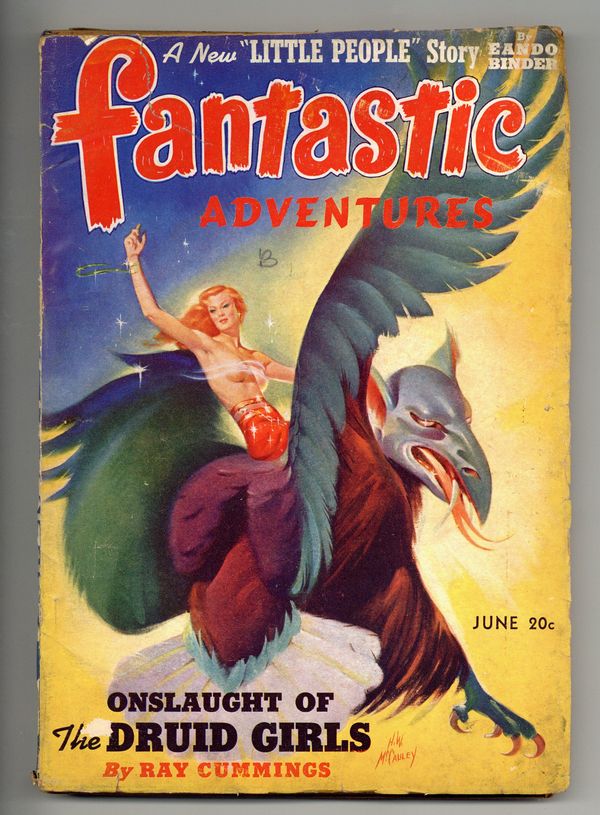 Volume 3, Issue 4 - June 1941. Cover by Harold W. McCauley. Science Fiction and Adventures magazine. Features a new "Little People" story by Eando Binder, and "The Onslaught of the Druid Girls" by Ray Cummings. 7-in x 9 1/2-in, 146 Pages, B&W. Cover price $0.20.