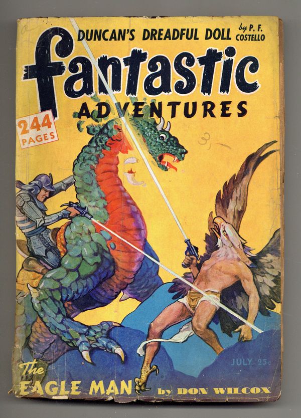Volume 4, Issue 7 - July 1942. Cover by J. Allen St. John. Science Fiction and Adventures stories. This issue features "Duncan's Dreadful Doll" by P.F. Costello, and "The Eagle Man" by Don Wilcox. Softcover Pulp, 7-in x 10-in, 244 Pages, B&W. Cover price $0.25.