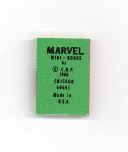 The Spider-Man Marvel Mini Book is one in a set of 6 released in 1966 via gumball vending machines. These are the smallest "comics" ever made, measuring just 5/8-in. x 7/8-in. with 50 black-and-white interior pages, and glossy covers (in various bright background colors). Whereas the Wham-O Giant Comics is the largest comics series ever produced (about full newspaper dimensions), this little Marvel Mini series of six represents the world's smallest comics set! The complete Marvel Mini Books series featured one book each for: Captain America, the Hulk, Millie the Model, Sgt. Fury, and Spider-Man, and Thor. Each title was released in six different colors (Blue, Green, Lime, Orange, Red and Yellow). NOTE: Way back in 1966, Buddy Saunders, MyComicShop's owner bought several bags of these little gems. Over the years, he gave many away to customers who placed back issue orders, and sold others for $5 to $10 each as they grew scarce. Today, these tiny little comics are very difficult to find, but make a cool addition to any comics collection.