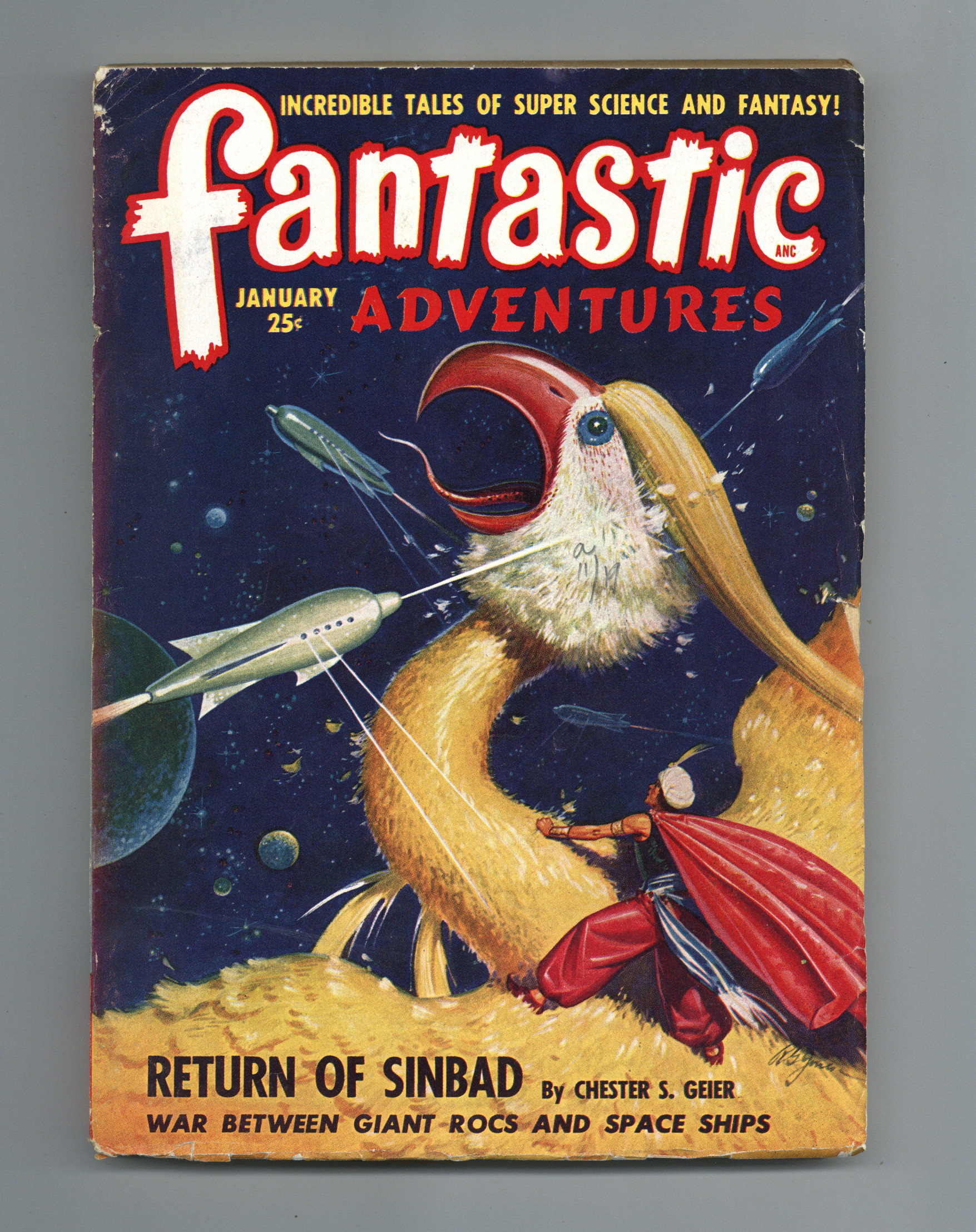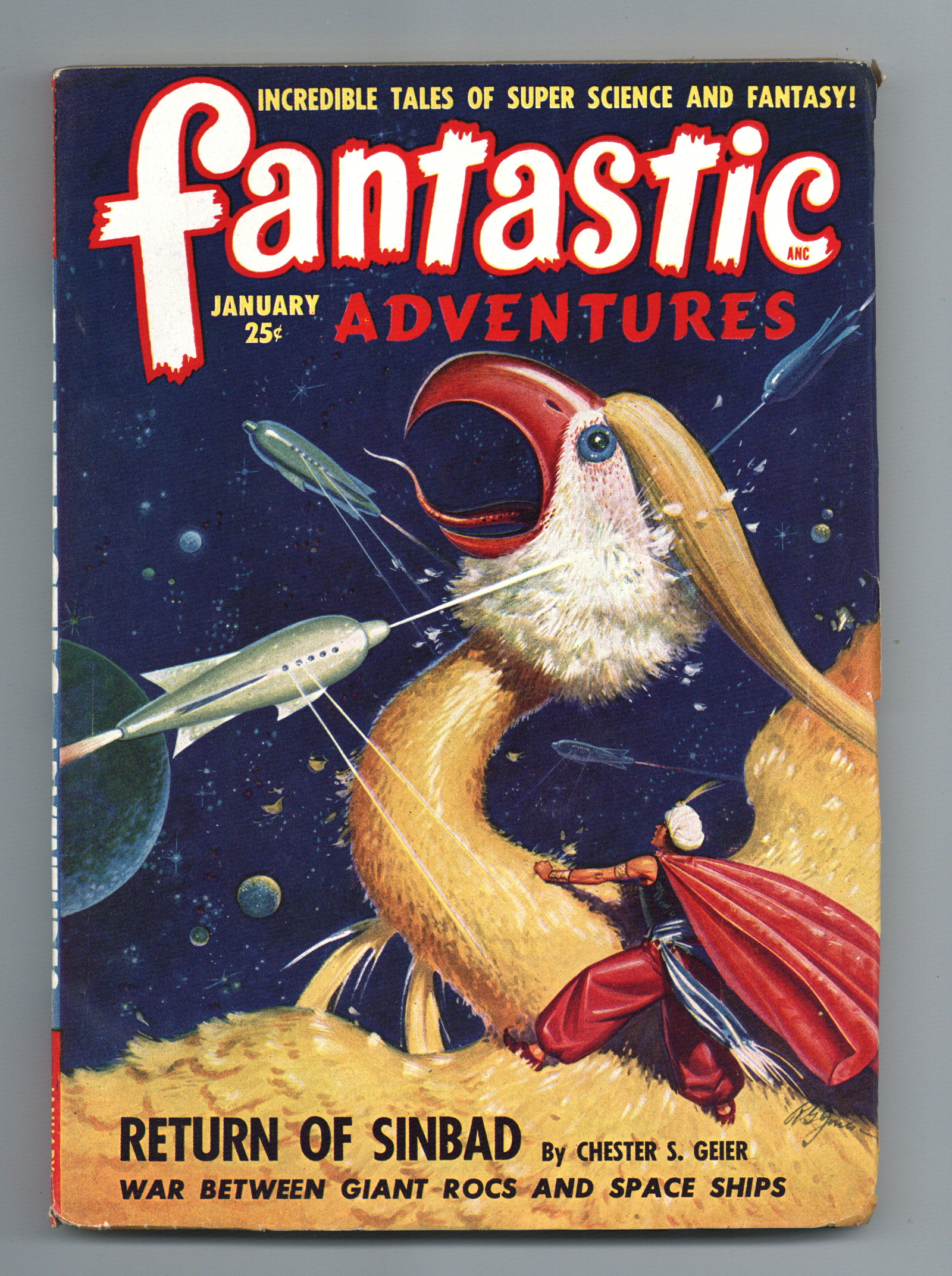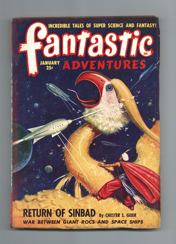 Volume 11, Issue 1 - January 1949. Cover by Robert Gibson Jones. Science Fiction and Adventures stories. This issue features "Return of Sinbad" by Chester S. Geieger. Softcover Pulp, 7-in x 10-in, 156 Pages, B&W. Cover price $0.25.