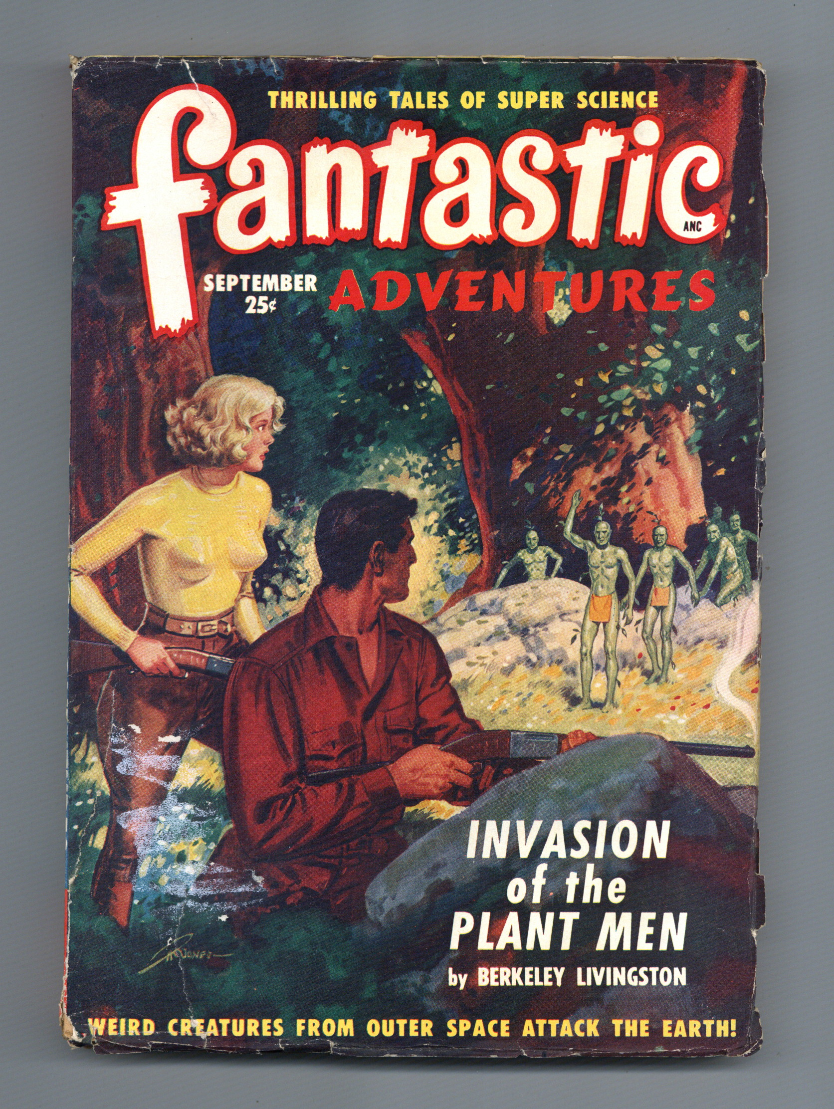 Published Sep 1949 by Ziff Davis.$2.65Volume 11, Issue 9 - September, 1949. Cover by Robert Gibson Jones. Science Fiction and Adventures stories. This issue features "Invasion of the Plant Men" by Berkeley Livingston. Softcover Pulp, 7-in x 10-in, 162 Pages, B&W. Cover price $0.25.