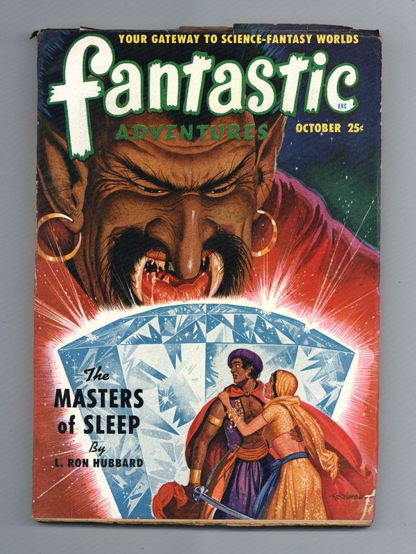 Volume 12, Issue 10 - October 1950. Cover by Robert Gibson Jones. Science Fiction and Adventures stories. This issue features "The Masters of Sleep!" by Lafayette Ronald Hubbard. Softcover Pulp, 7-in x 10-in, 132 Pages, B&W. Cover price $0.25.