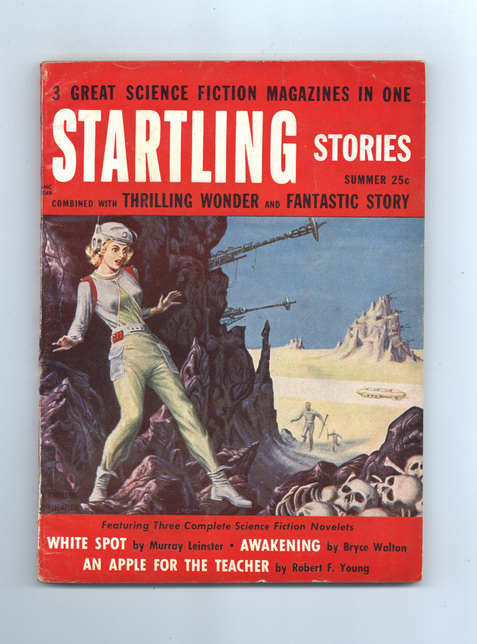 Published 1955 (est.) by Better Publications.$32.00Volume 33, Issue 2 - Summer, 1955. Science Fiction and Adventure stories. This issue features "White Spot" by Murray Leinster, "Awakening" by Bryce Walton, and "An Apple For The Teacher" by Robert F. Young. Softcover Pulp, 6 1/2-in x 9-in, 118 Pages, B&W. Cover price $0.25.