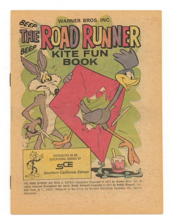Tags: Kite Fun BookPublished 1971 by Reddy Kilowatt Inc..$13.00Beep Beep: The Road Runner Kite Fun Book (1971) is a promotional comic distributed by Reddy Kilowatt, Inc. via investory-owned utility companies. The elusive Rod Runner and Wile E. Coyote join Reddy Kilowatt in a story about kite safety and fun. The back cover features Reddy's Kite Safety Rules. 16 pages, full color, newsprint, 7-in. x 5-in., no cover price.