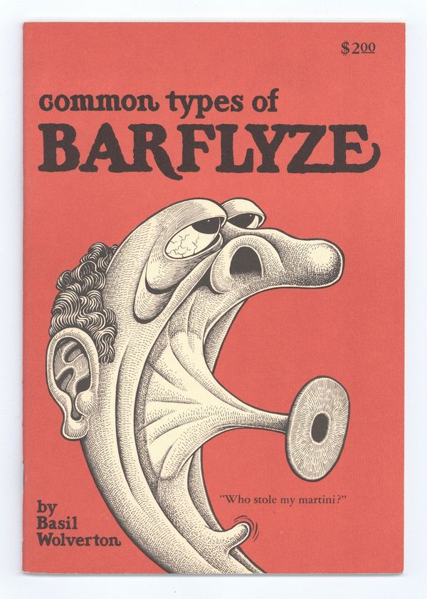 Common Types of Barflyze (1974), by Basil Wolverton, is published by Wolverton Enterprises. Get a good look at some of the all too familiar characters who frequent many a watering hole. 34 pages, color cover, black and white illustrations, 5.50-in x 8-in. Cover price $2.00.