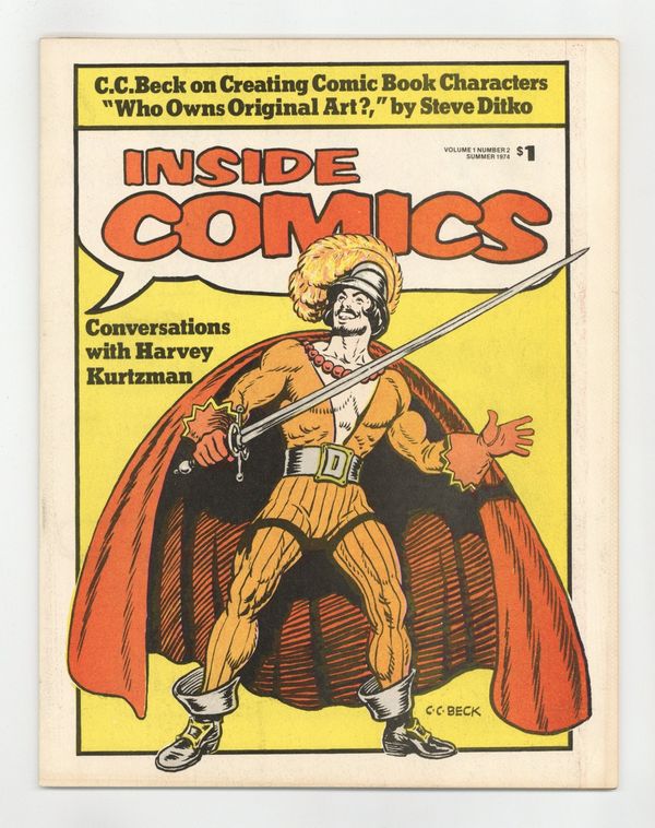 Published Aug 1974 by Galaxy News Service.$14.00Summer 1974. 8.25 x 10.75; black and white; 48 pages. Harvey Kurtzman interview. Articles: "The Mini-Cons That Attacked Southern California" by Mark Evanier; "Working for Mickey Mouse" by David Marlow on the sad state of Walt Disney Productions following Disney's death; a Viewpoints column by C.C. Beck; and Steve Ditko on "Who Owns Original Art" (his answer may surprise you). Edited by Joe Brancatelli. Cover price $1.00.