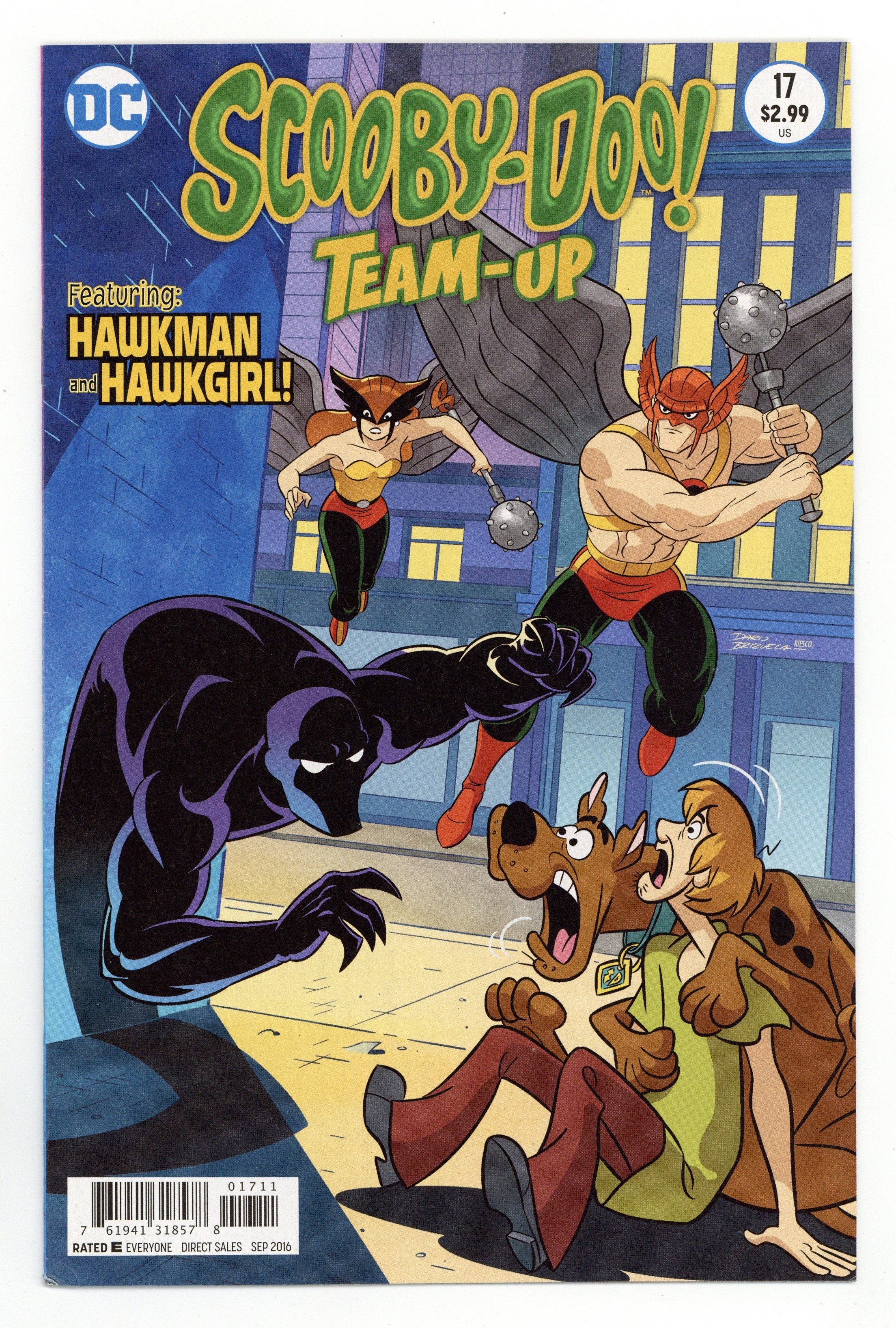 Written by Sholly Fisch. Art and Cover by Dario Brizuela. Is Midway City haunted? That's the mystery that Scooby and the gang have to help Hawkman and Hawkgirl unravel. Or are the spooky shenanigans masking a nefarious plot by Hawkman's old enemies, the Shadow Thief, the Fadeaway Man, and the Matter Master? 28 pages, full color. Rated E Cover price $2.99.