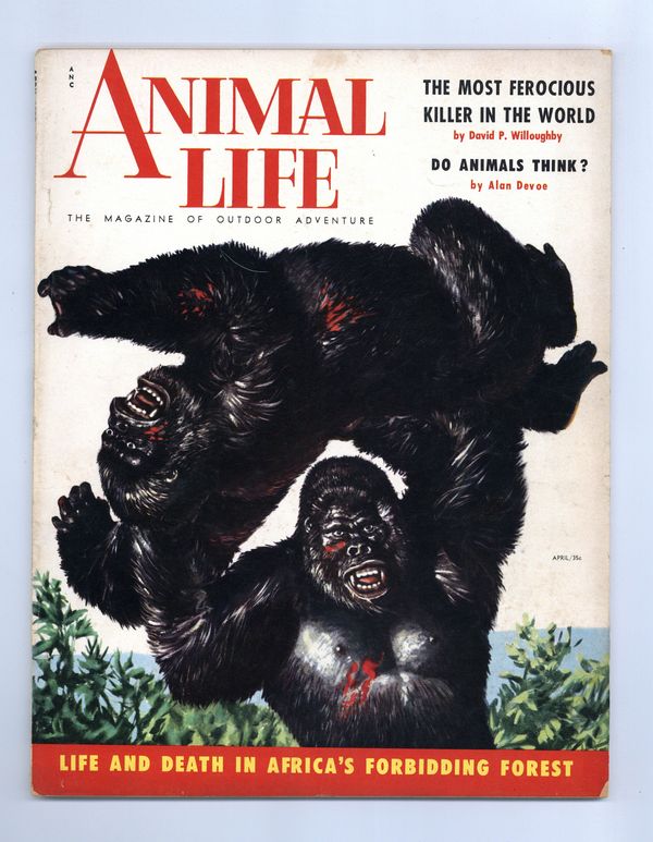 Volume 1, Issue 7 - April 1955. Men's interest Magazine focusing on Hunting and Animal stories and articles. This issue features "Do Animals Think?" by Alan Devoe, and "The Most Ferocious Killer in the World" by David P. Willoghby. 8 1/2-in. x 11-in., 66 pages, Text, with B&W images through out Cover price $0.35.