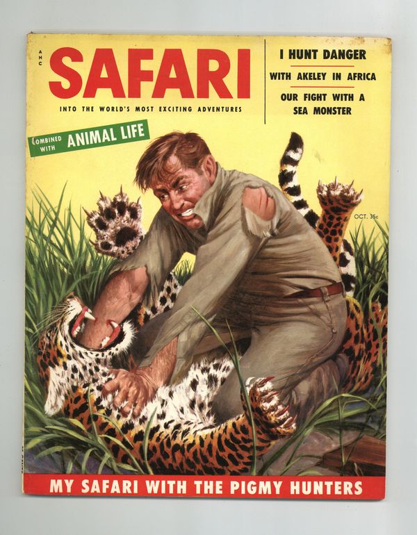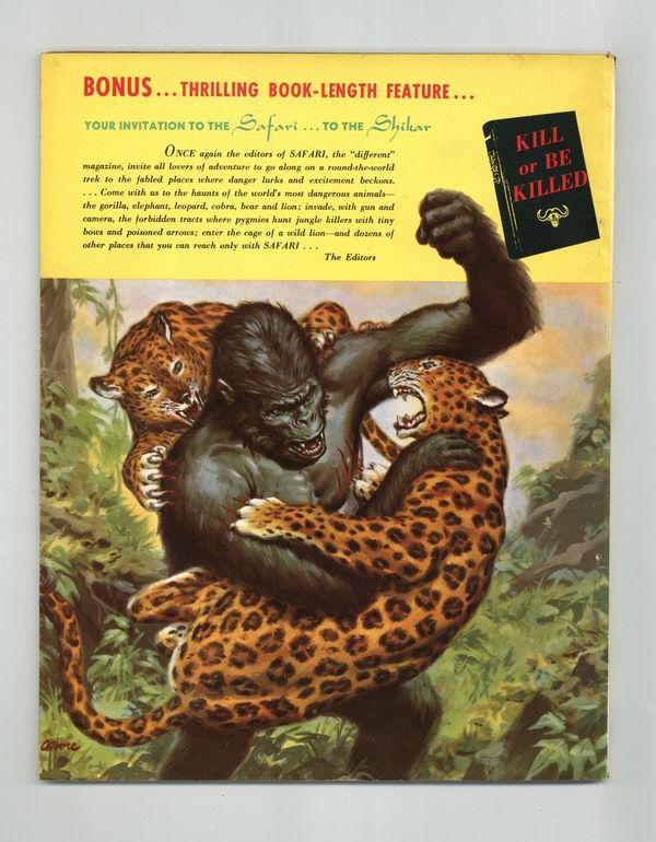 Published Oct 1955 by Weider Publications.$73.00Volume 2, Issue 3 - October, 1955. Cover by Robert Doares. Men's interest magazine focusing on true-life jungle and hunting stories and articles. 8 1/2-in. x 11-in., 82 pages, Text with B&W photos Cover price $0.35.