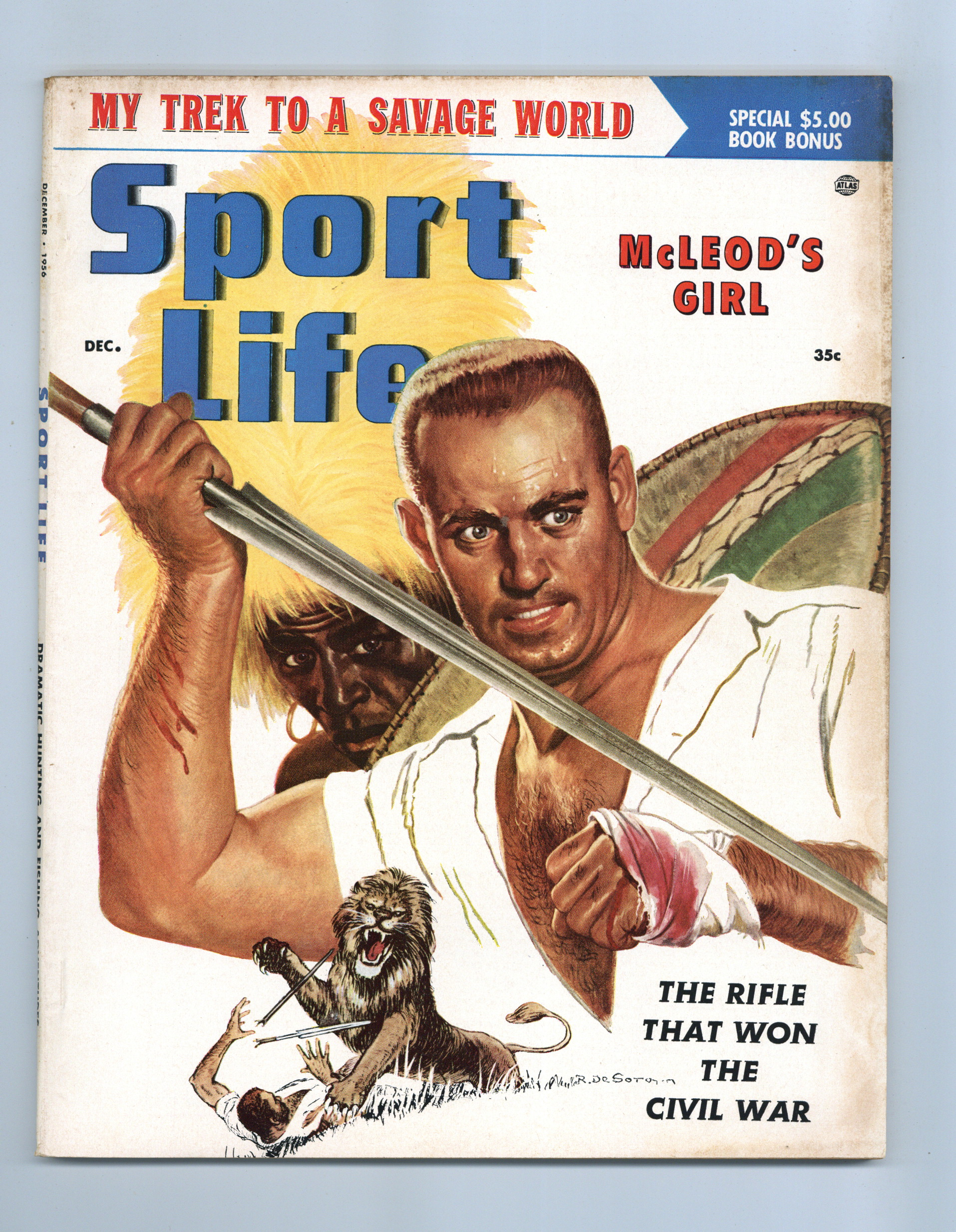 Published Dec 1956 by Official Magazine Corp..$31.00Volume 3, Issue 4 - December 1956. Cover by Rafael De Soto. Men's interest magazine focusing on hunting, fishing, and fitness articles. 8 1/2-in. x 11-in., 98 pages, B&W Cover price $0.35.
