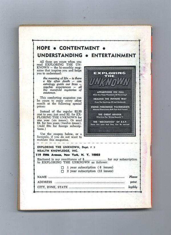 Published Dec 1967 by Health Knowledge.$20.00Vol. 1, No. 5 - December , 1967. 5.5" x 7.5", 130 pages, B&W. Cover price $0.50.