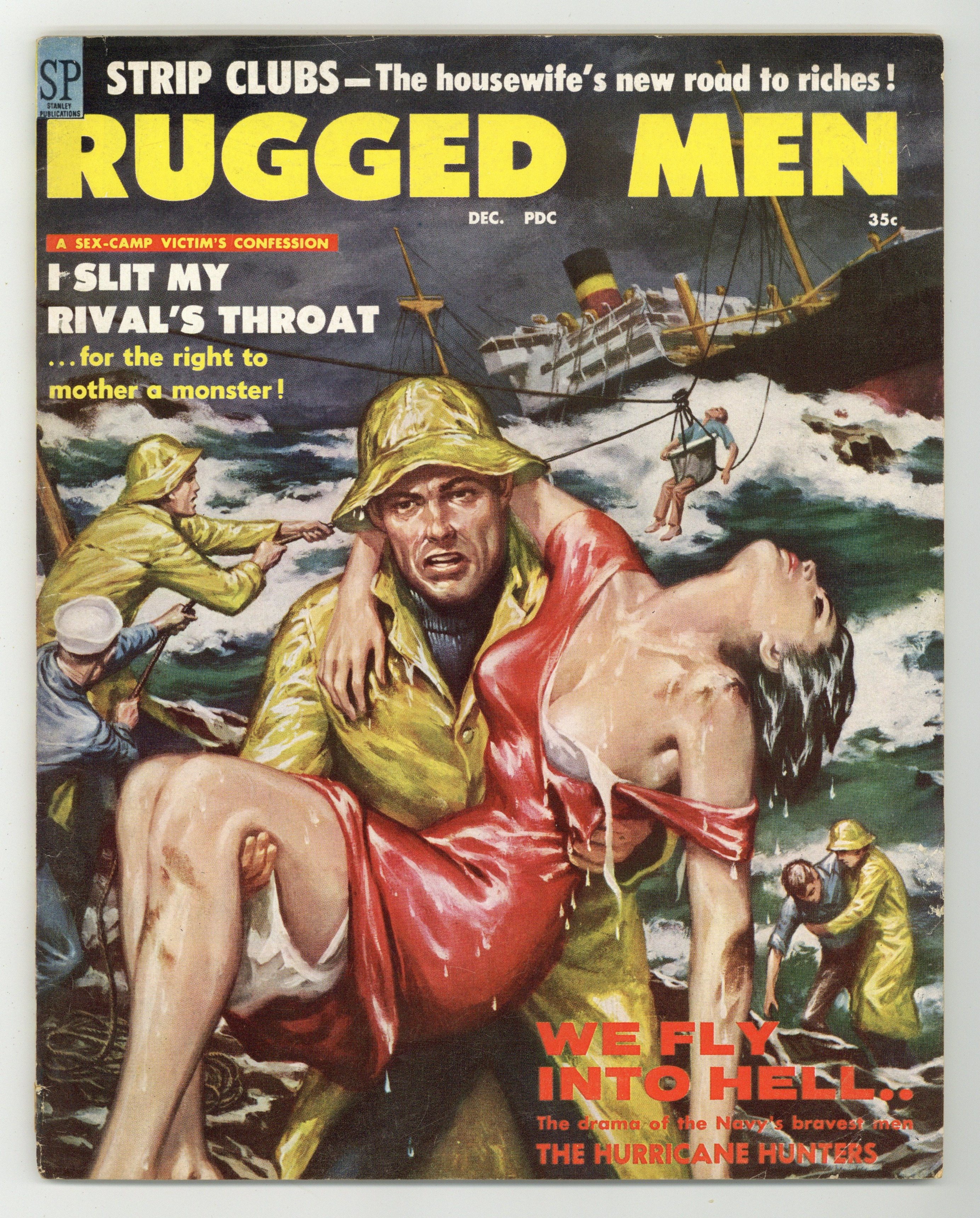 Volume 2, Issue 2 - December 1958. Cover by Clarence Doore. Men's interest magazine focusing on war and crime stories, along with a monthly pin-up girl pictorial. 8 1/2-in. x 11-in., 76 pages, Text (with B&w illustrations and photos throughout) Cover price $0.35.
