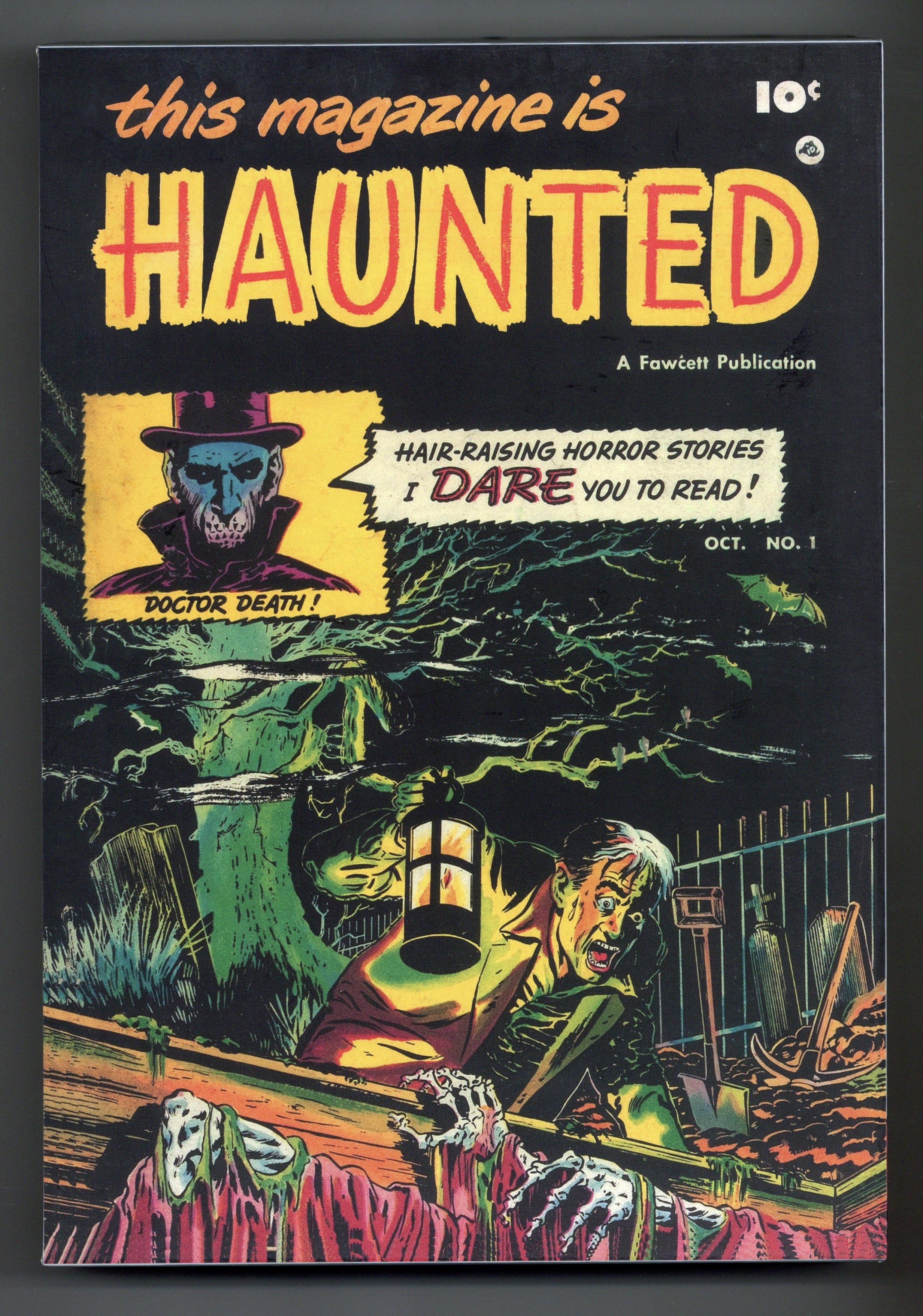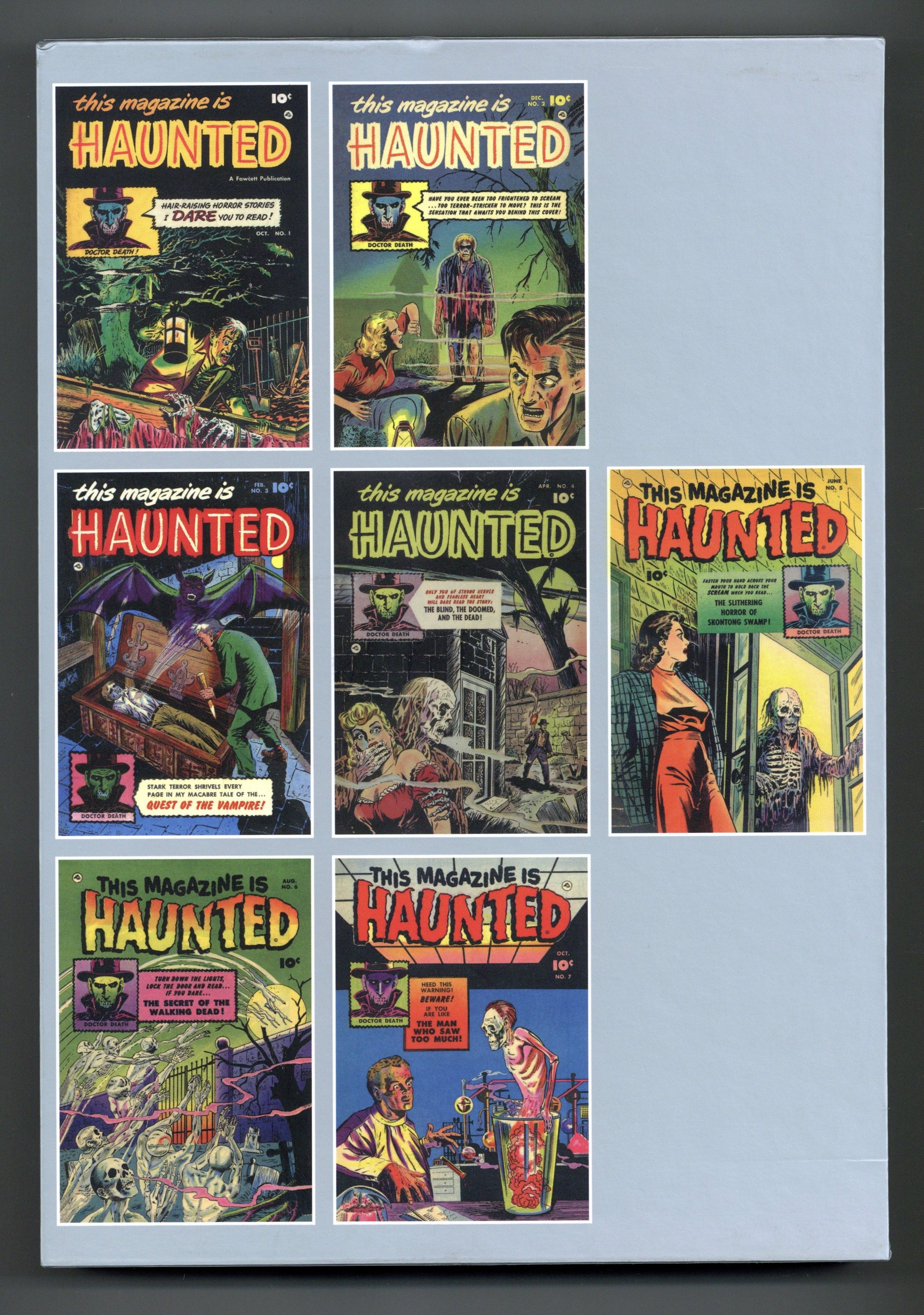 Volume 1 - 1st printing. "October 1951 to October 1952!" Collects This Magazine is Haunted (1951-1954 Fawcett/Charlton) #1-7. Here's another forgotten or bypassed old comicbook in the great tradition of the likes of EC Comics and the PS multiple-volume library of Harvey's horror line-up, featuring a dizzying bevy of gnarled and twisted tales of post-death revenge and retribution. The first seven issues (and more animated corpses than you could shake a stick at) are presented to you for just a tiny fraction of what you would expect to pay for a mint-condition version of just one copy the actual comic... and this intoxicating first volume is in a slipcased edition hardcover! Hardcover (with Slipcase), 256 pages, full color. Cover price $69.99.